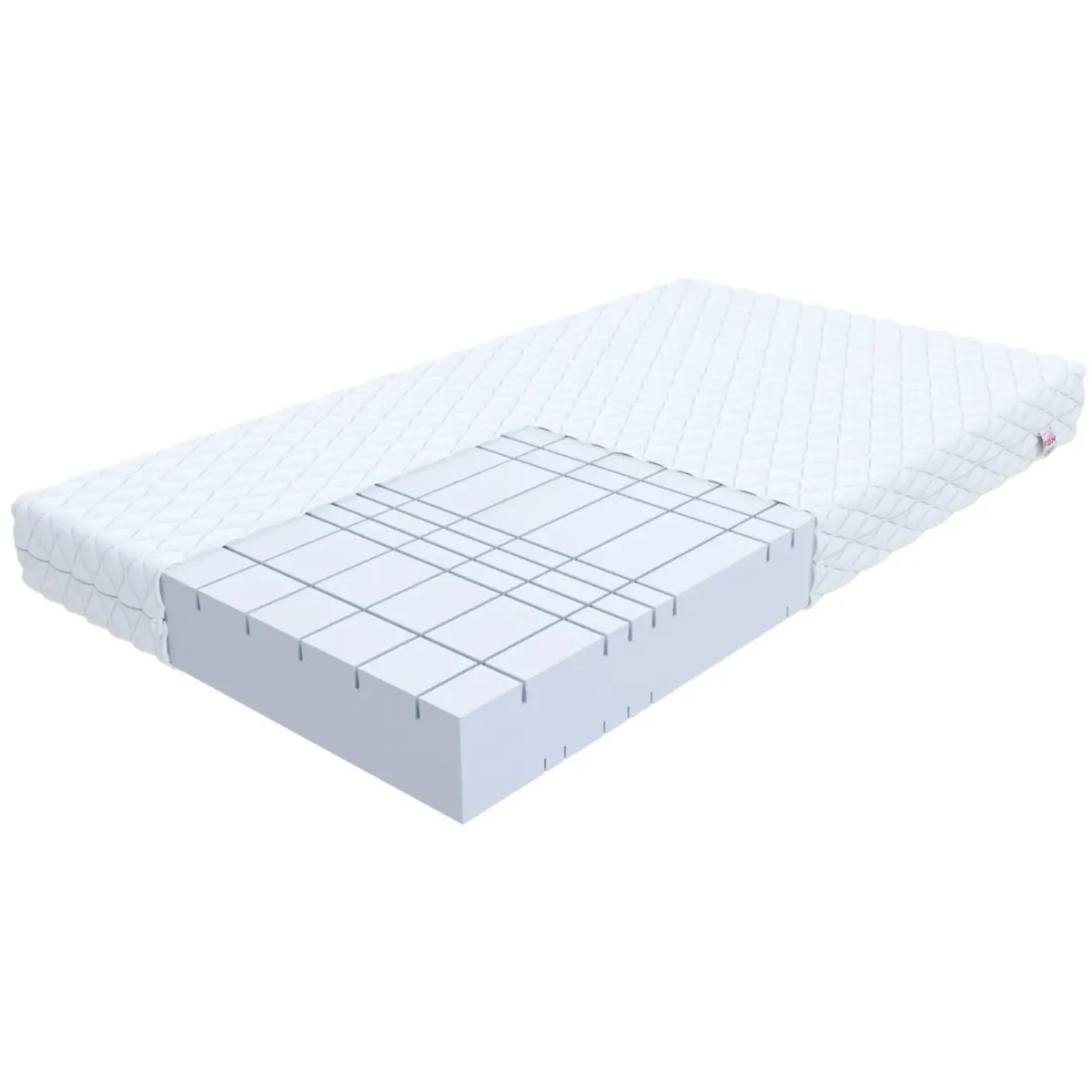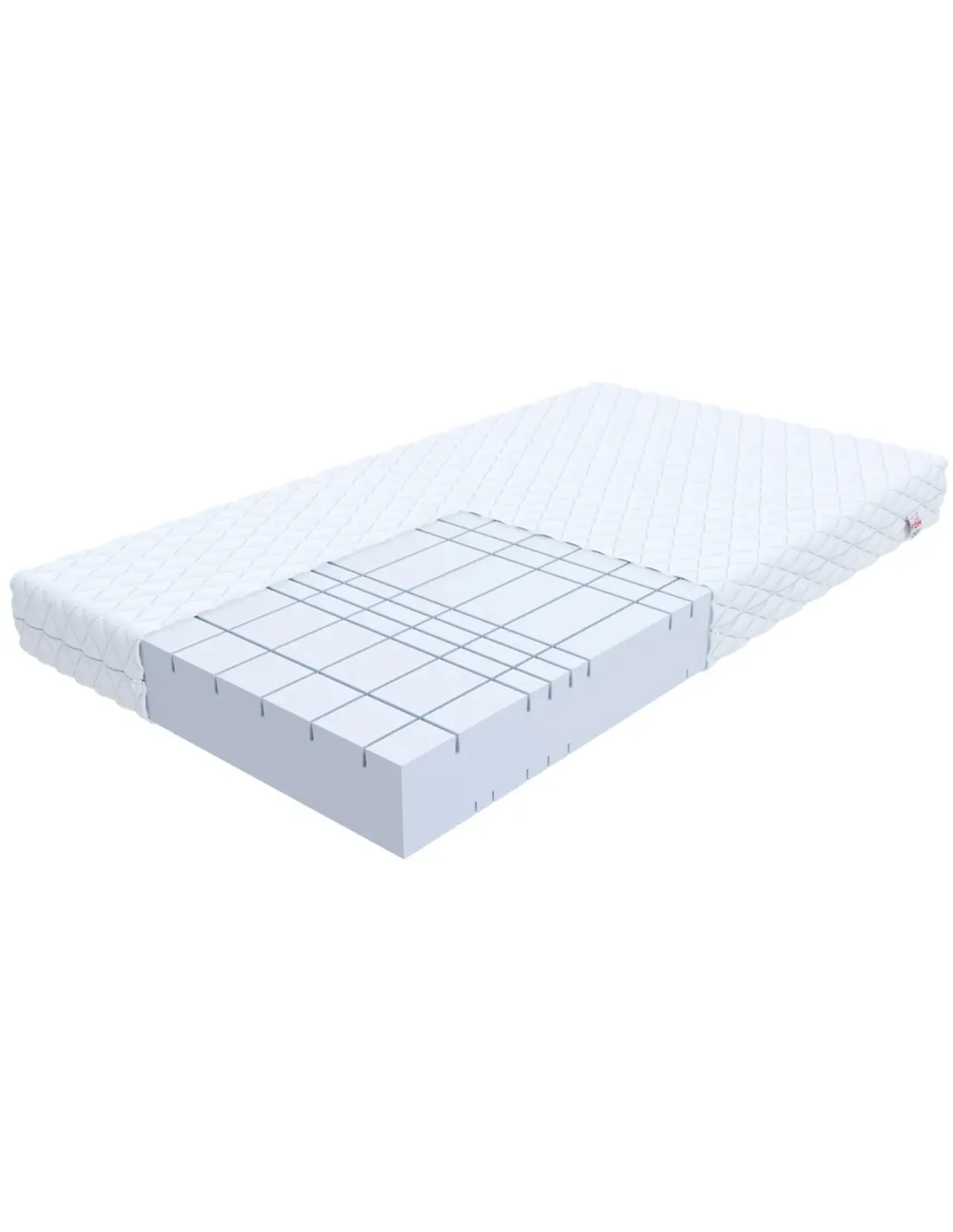Materac GOYA FDM to uniwersalny model piankowy zaprojektowany z myślą o całej rodzinie. Powstał z jednej bryły trwałej pianki poliuretanowej T25, co przekłada się na jego długowieczność i odporność na uszkodzenia. Prosta, ale przemyślana konstrukcja zapewnia odpowiednie podparcie dla kręgosłupa i gwarantuje komfortowy sen każdej nocy. Dzięki dwustronnej budowie, materac można regularnie odwracać, co znacznie wydłuża jego żywotność. GOYA jest elastyczny, twardy i doskonale sprawdzi się w każdej sypialni – zarówno dziecięcej, jak i dorosłej. To idealny wybór dla osób szukających dobrego stosunku jakości do ceny.