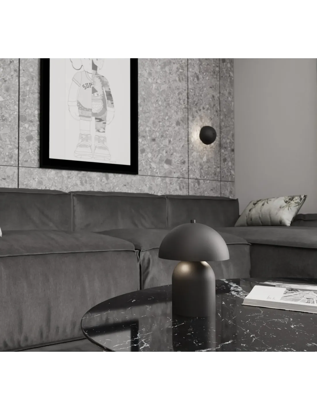 MUSH LN2 to lampka nocna, która łączy oryginalną formę z nowoczesnym minimalizmem. Jej kształt inspirowany został formą grzybka – zaokrąglona kopuła pełni funkcję klosza, osadzonego na prostej i solidnej podstawie. Matowe, czarne wykończenie sprawia, że model ten wpisuje się doskonale w trendy loftowe, industrialne i nowoczesne.