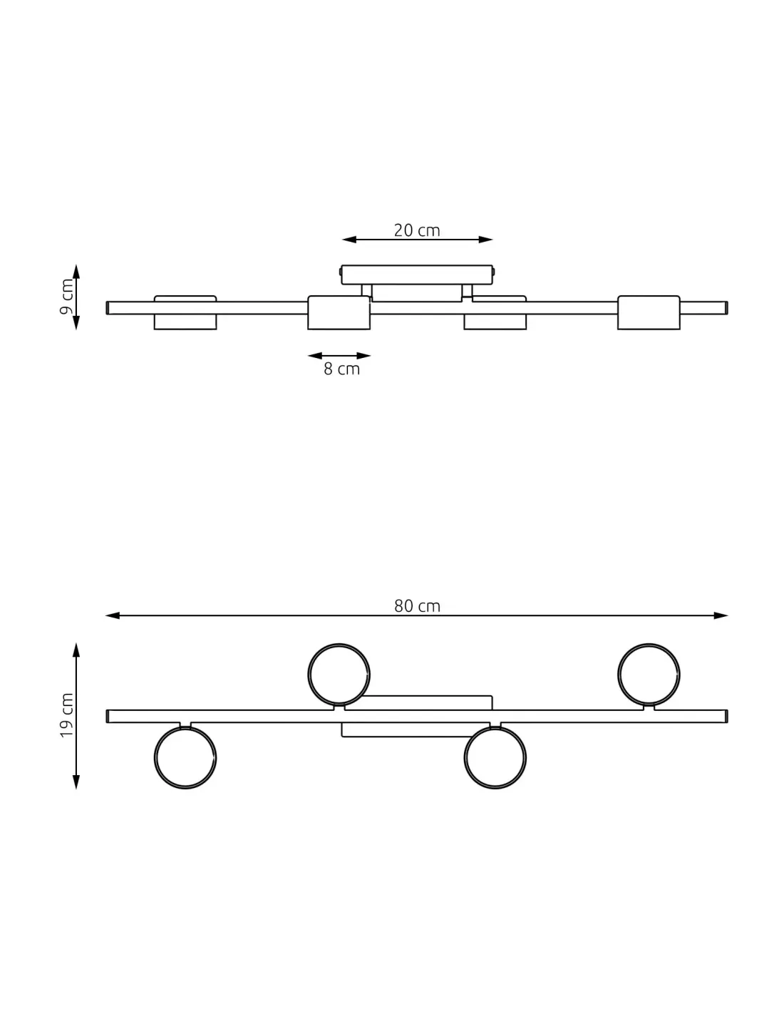 Solidna metalowa konstrukcja zapewnia trwałość, a czarne wykończenie podkreśla jego loftowy charakter. Klosze o średnicy 8 cm wykonane z metalu pełnią rolę osłony żarówek, nadając całości spójny, industrialny styl. Lampa korzysta z opraw GX53 i może być wyposażona w cztery źródła światła o maksymalnej mocy 12W, co pozwala na dopasowanie jasności do indywidualnych potrzeb.