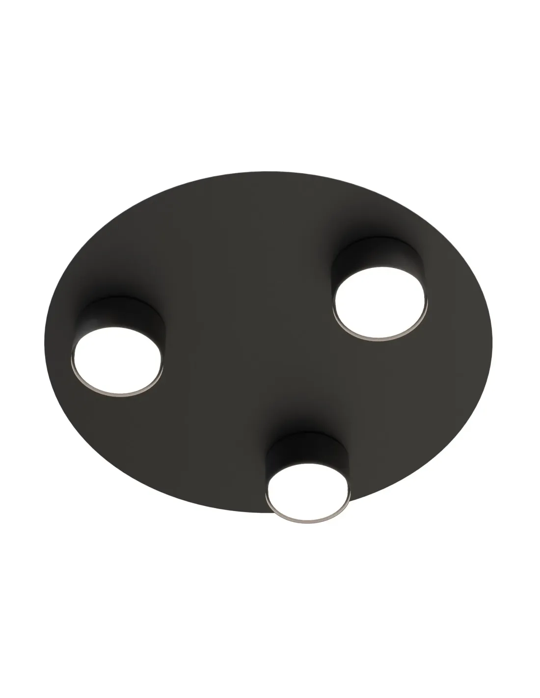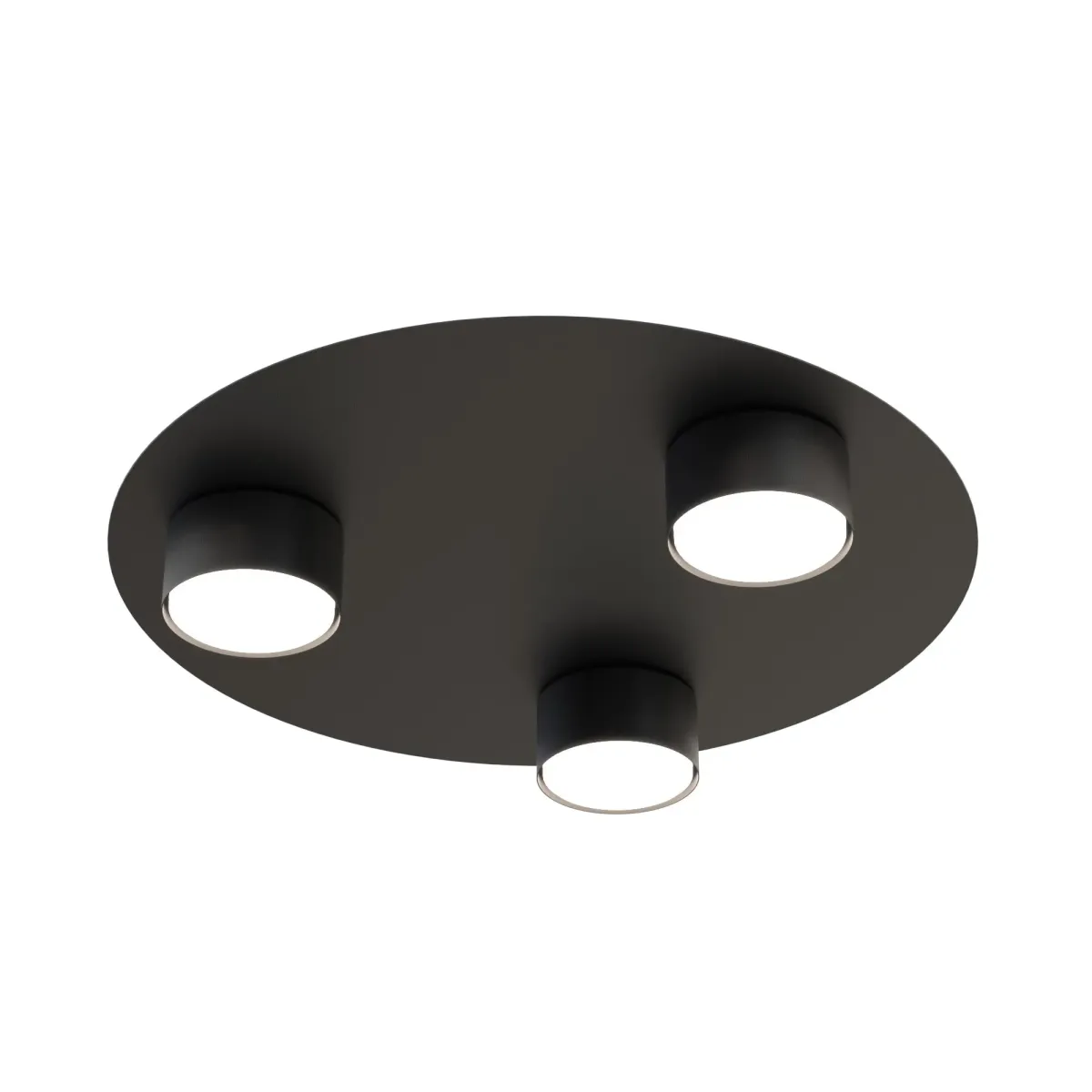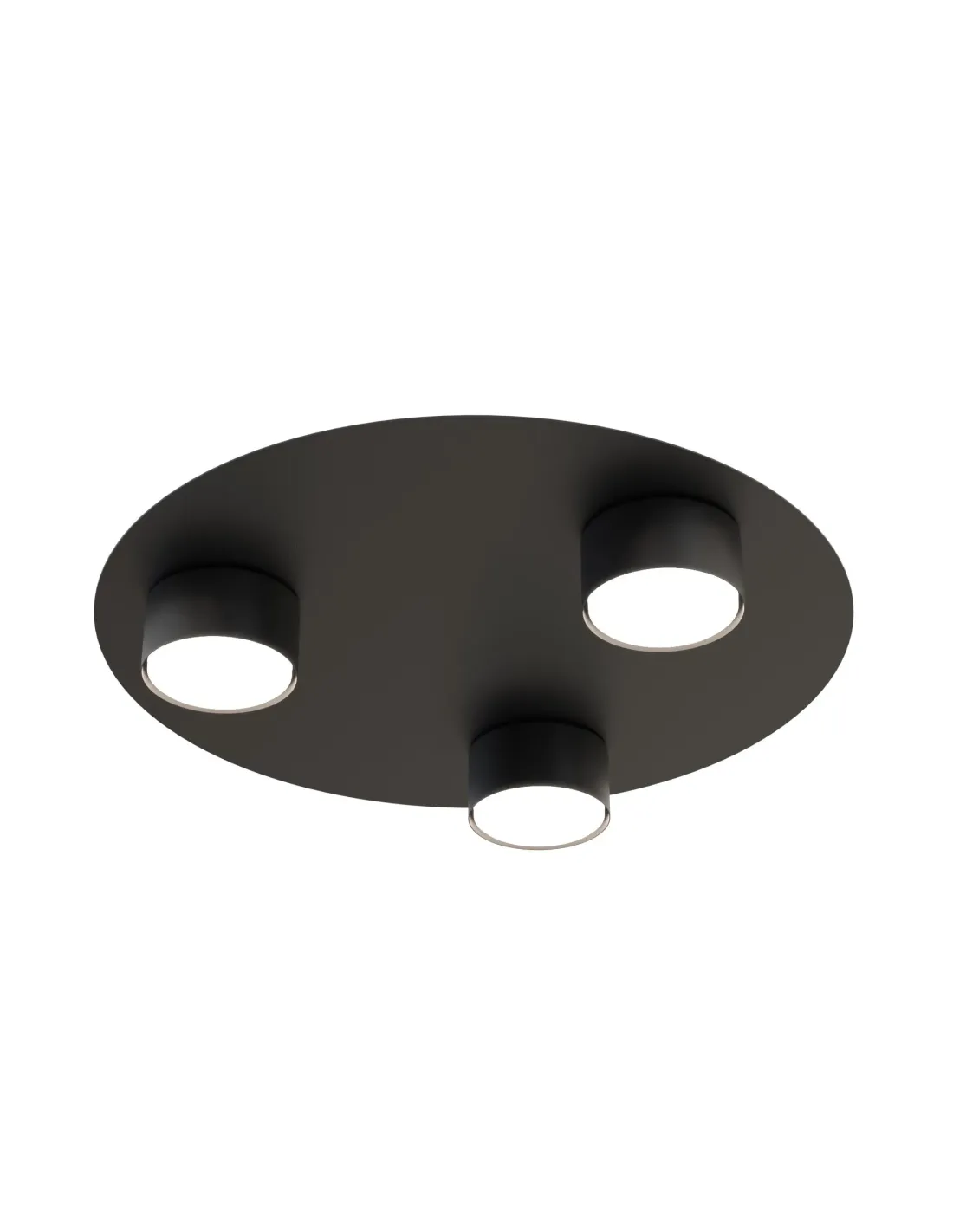 BOLX 3 BL BLACK to model wyróżniający się prostotą i klarowną konstrukcją. Na okrągłej podstawie zamontowano trzy symetrycznie rozmieszczone oprawki, każda osłonięta cylindryczną nakładką z metalu. Taka forma umożliwia skierowanie światła w różnych kierunkach, zapewniając skuteczne i funkcjonalne oświetlenie wnętrza.