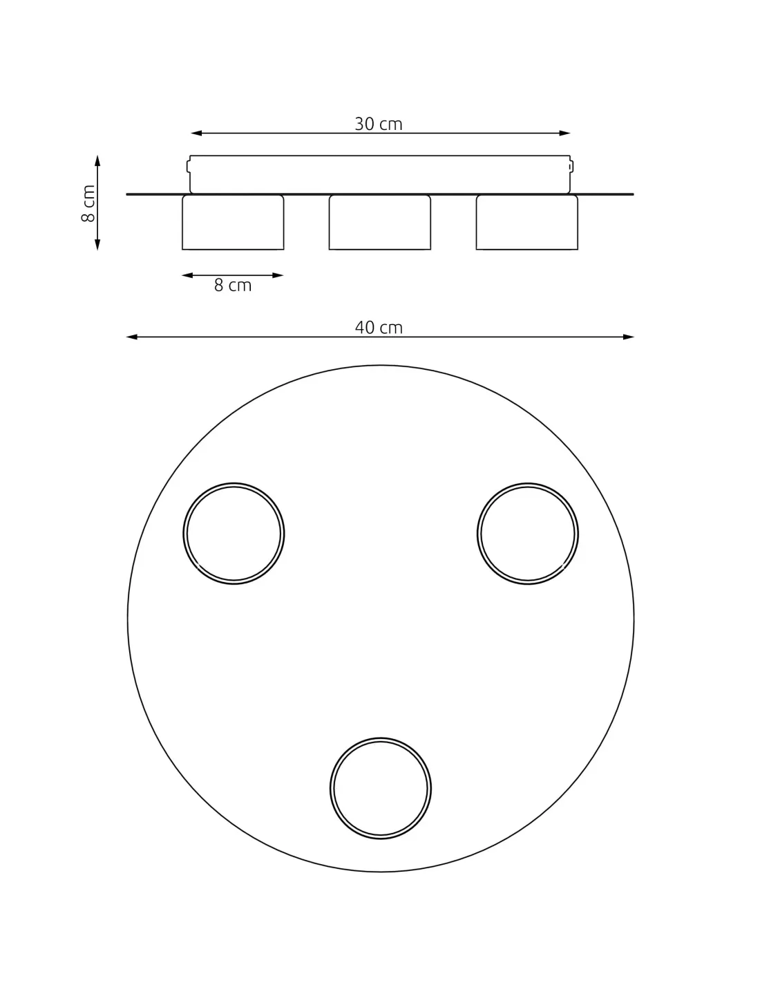 Trzy źródła światła w standardzie GX53 umożliwiają skuteczne oświetlenie wybranych stref, nie przytłaczając przy tym wnętrza. Niewielkie wymiary lampy (40 cm szerokości, 20 cm głębokości, 7 cm wysokości) sprawiają, że idealnie sprawdza się także w pomieszczeniach o niższych sufitach lub ograniczonej przestrzeni. Brak regulacji wysokości rekompensowany jest zwartą i funkcjonalną formą.