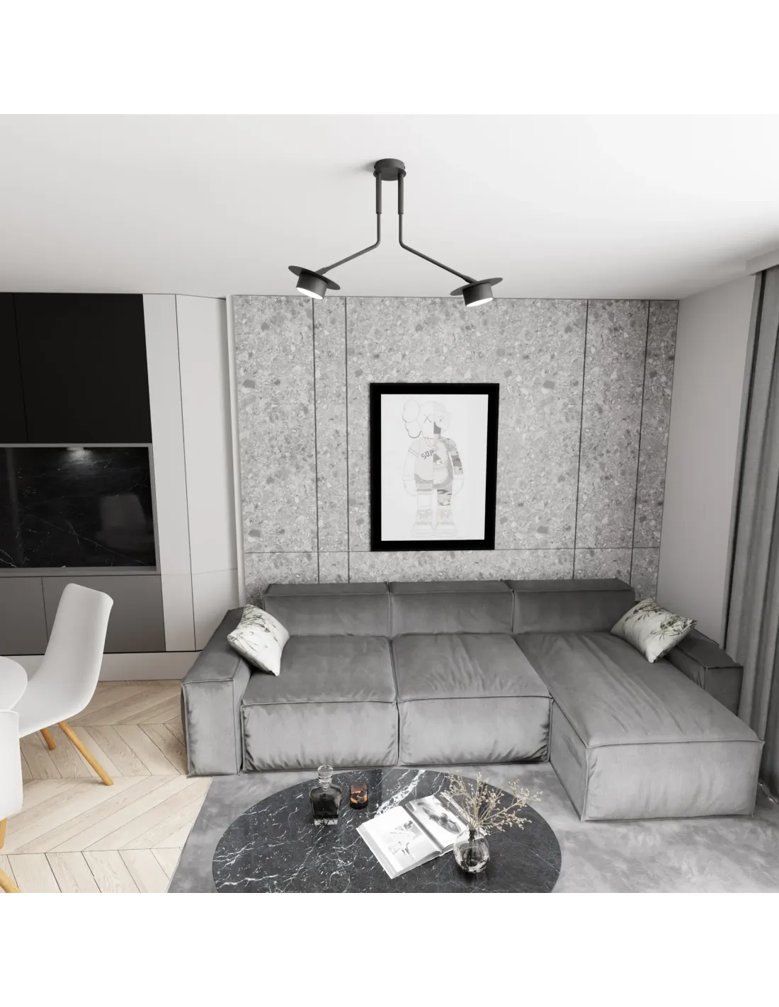 MIZU 2 to nowoczesna lampa sufitowa, która łączy prostotę formy z możliwością kreowania wyjątkowego klimatu. Jej atutem są regulowane klosze, pozwalające kierować światło w różnych kierunkach, co daje efekt nastrojowego, nieregularnego rozproszenia. To więcej niż oświetlenie – to architektura światła, która buduje charakter wnętrza.