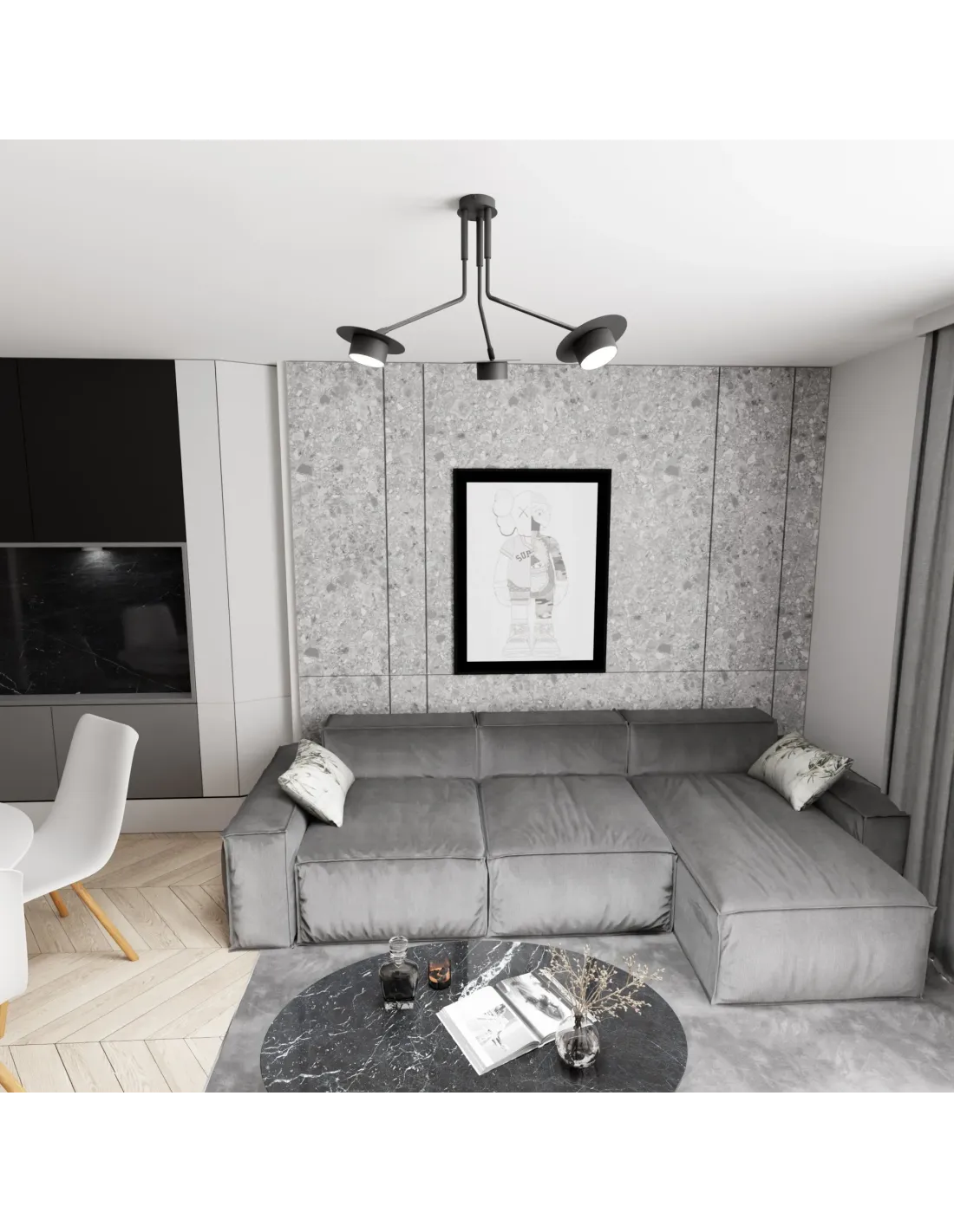 MIZU 3 to nowoczesna lampa sufitowa, która przyciąga uwagę możliwością tworzenia klimatycznego światła dzięki regulowanym kloszom. Umożliwiają one kierowanie światła w różnych kierunkach, co zapewnia unikalny efekt – nieregularne, a zarazem nastrojowe rozproszenie, nadające wnętrzu wyjątkowej atmosfery. To oświetlenie, które nie tylko rozjaśnia, ale również kreuje architekturę wnętrza.