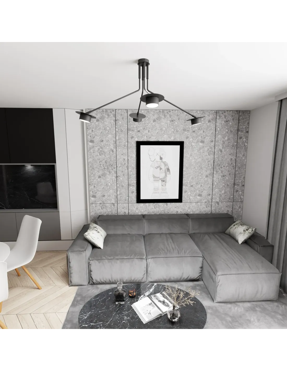 Czarna kolorystyka podkreśla elegancję i ponadczasowy styl, dzięki czemu lampa świetnie komponuje się zarówno w przestronnych salonach, jak i bardziej kameralnych wnętrzach. MIZU 4 stanie się centralnym punktem aranżacji – nad stołem w jadalni, w salonie czy w reprezentacyjnym gabinecie.