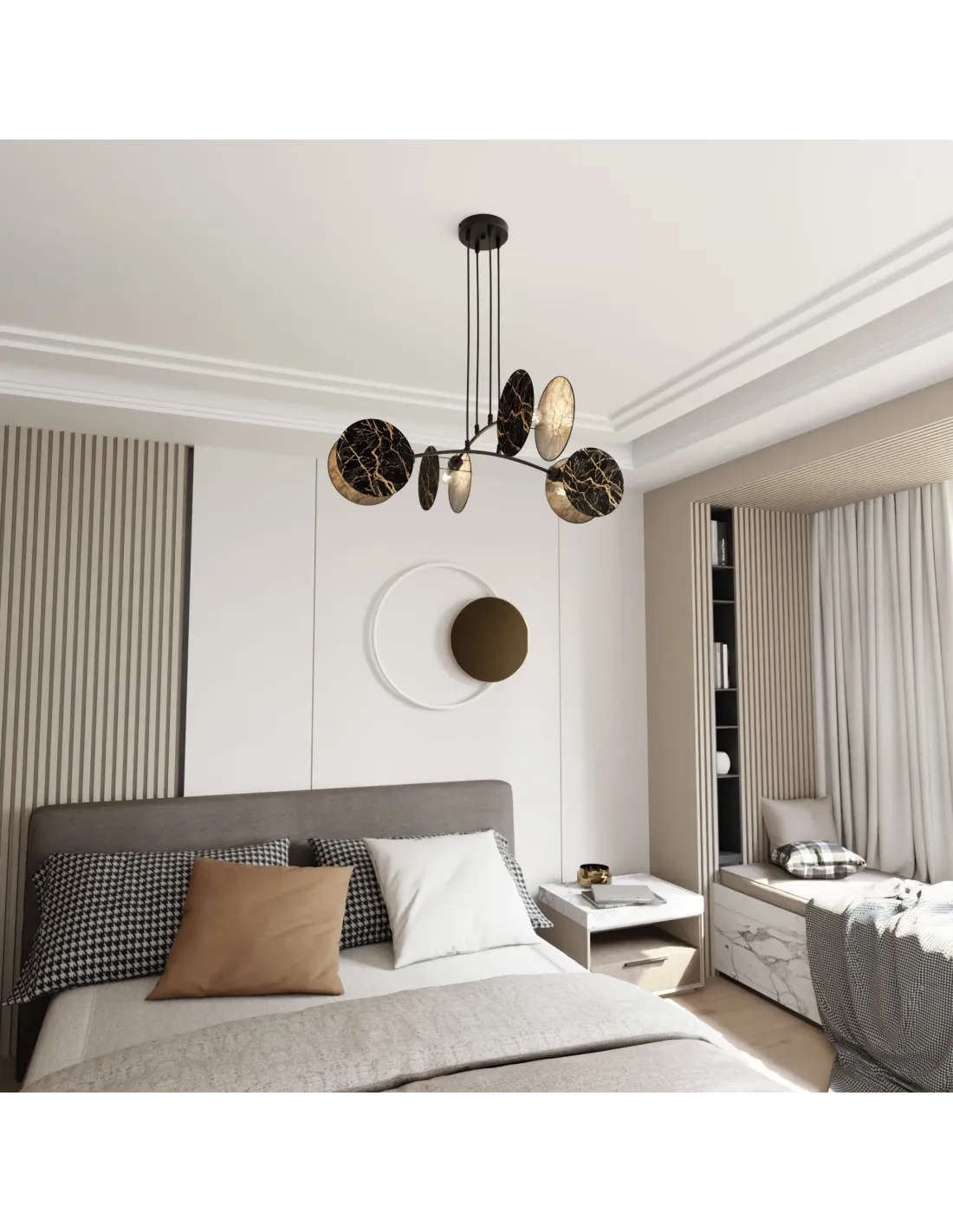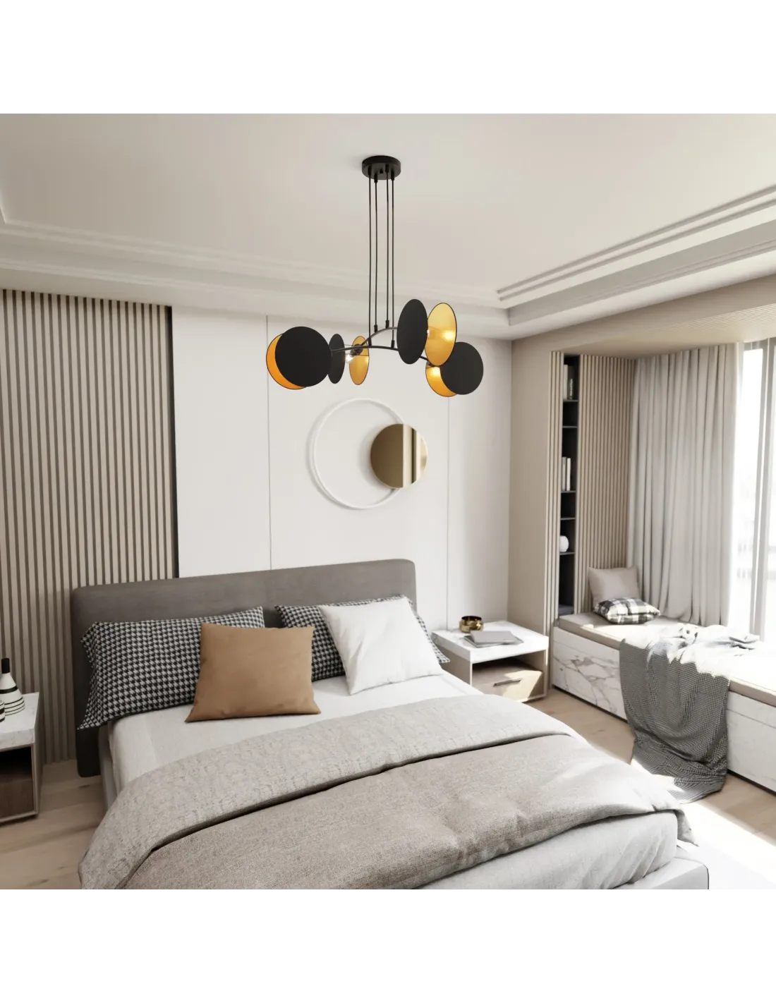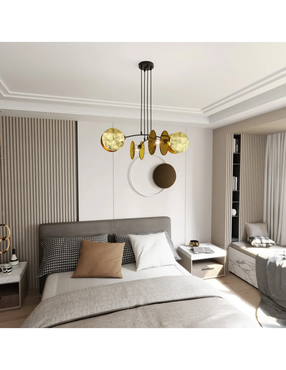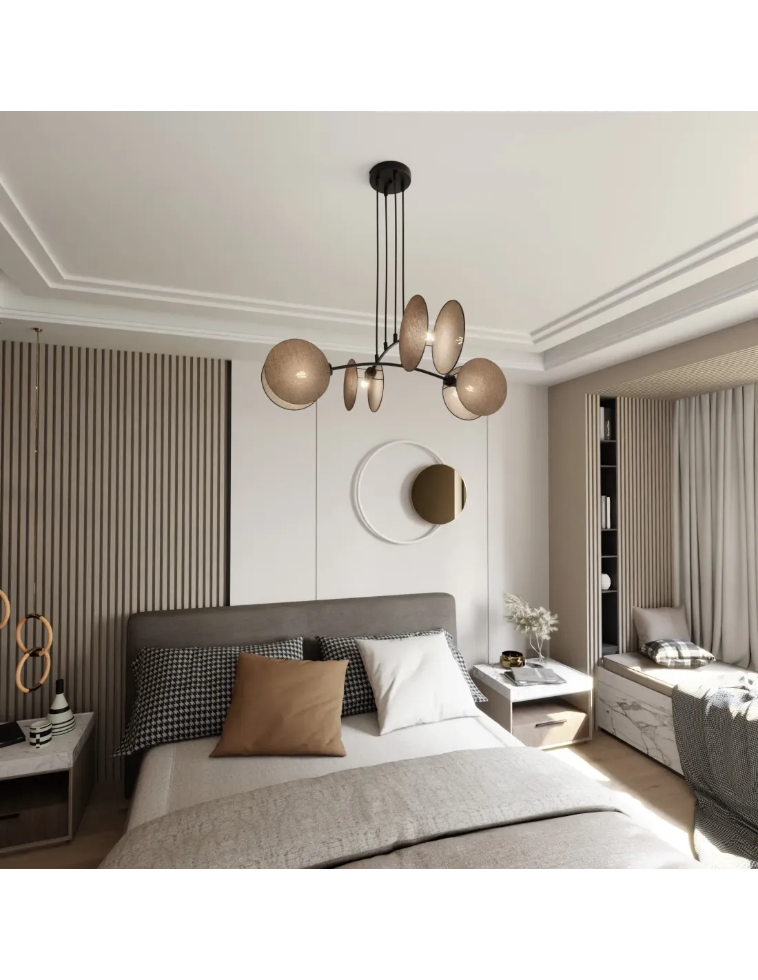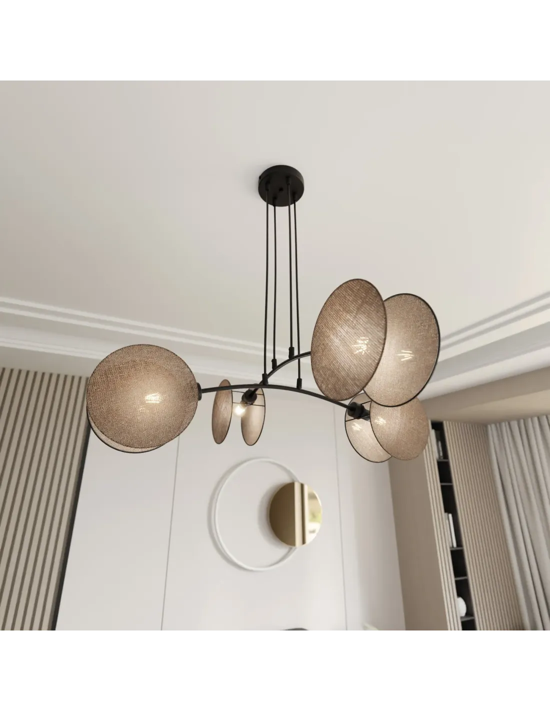 Model MOTIF wyróżnia się możliwością regulacji wysokości, co pozwala na dostosowanie do różnego rodzaju pomieszczeń – od niskich mieszkań po wysokie lofty. Uniwersalna forma lampy sprawia, że doskonale sprawdza się w niemal każdym stylu wnętrzarskim – od klasycznego, przez glamour, po nowoczesny minimalizm.