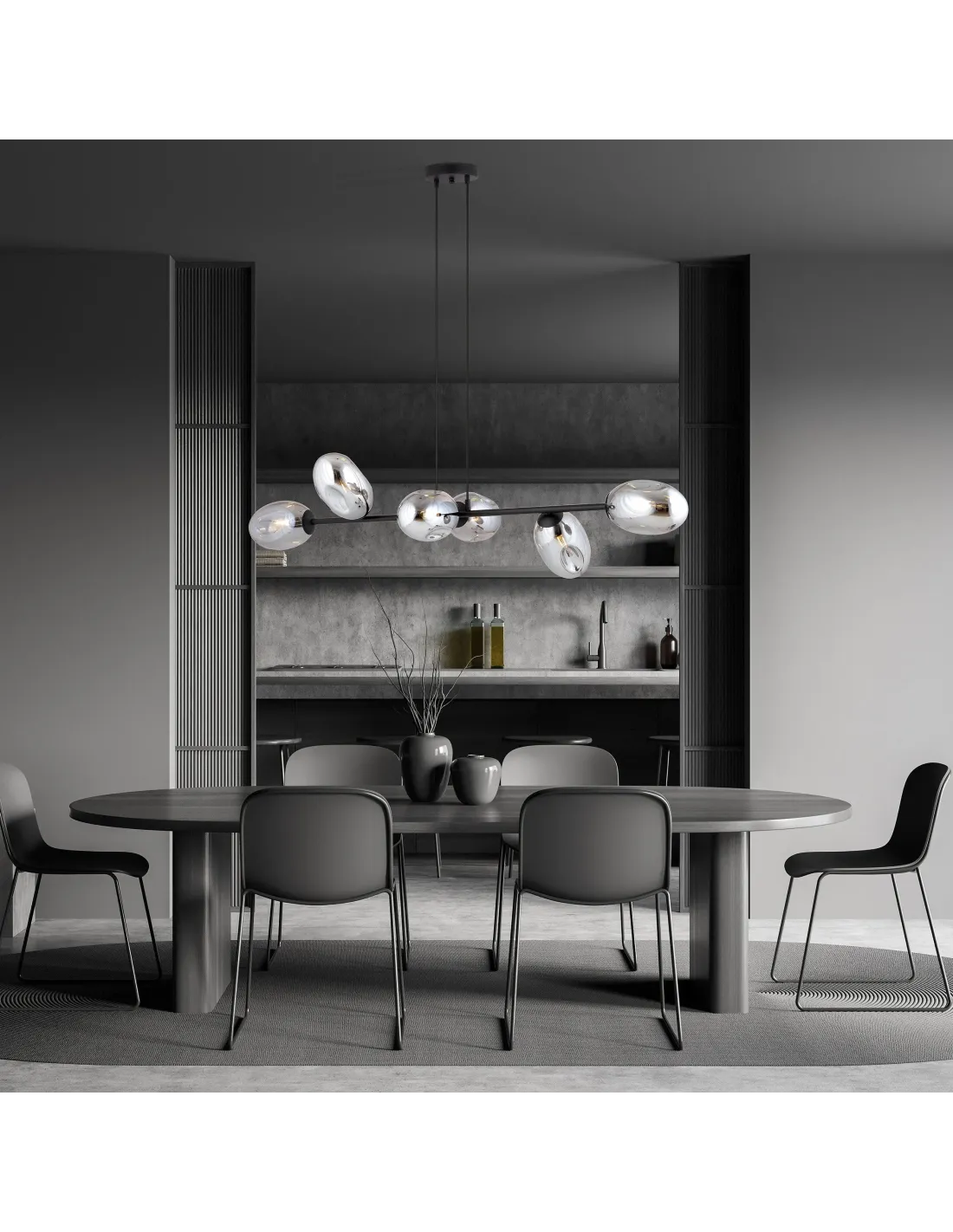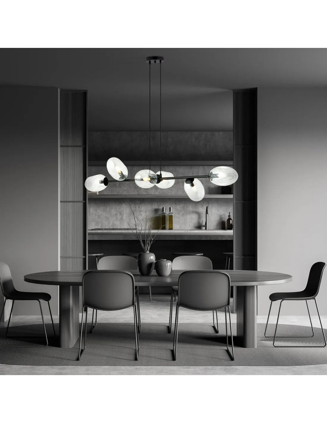 PANDORA wyróżnia się lekką, zgrabną linią, którą tworzą szklane klosze o średnicy 15 cm. Jej regulowana wysokość do 100 cm sprawia, że z łatwością dopasowuje się do różnych typów wnętrz, od wysokich loftów po bardziej kameralne przestrzenie. Subtelna, a jednocześnie wyrazista forma lampy nadaje wnętrzu niepowtarzalnego klimatu.