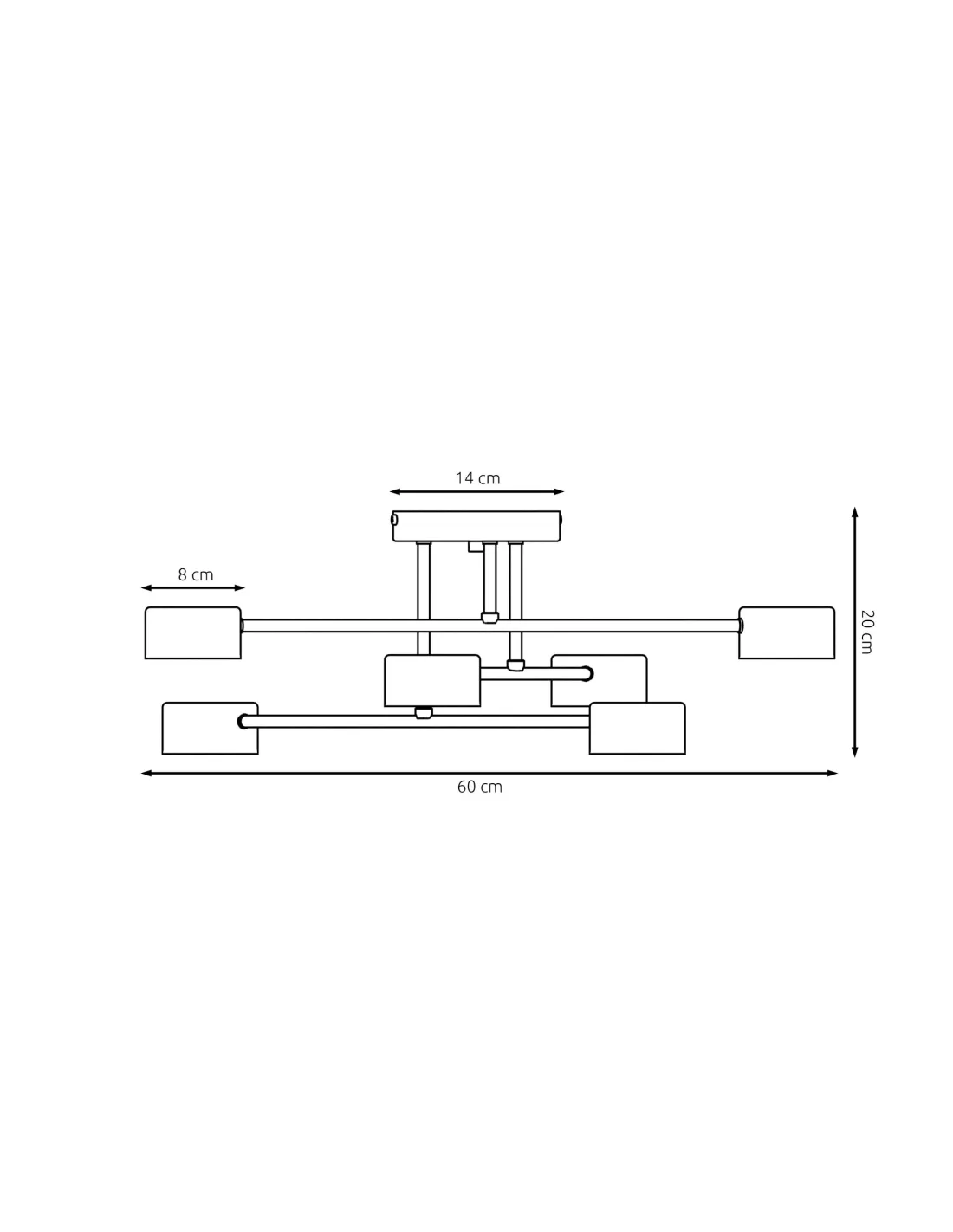 HALO 6 wyposażona jest w sześć kloszy o średnicy 8 cm, zamocowanych na poziomej konstrukcji o szerokości 60 cm. W centralnym punkcie znajduje się metalowa podsufitka o średnicy 14 cm, która harmonijnie łączy całość w jednolitą formę. Pomimo większej liczby źródeł światła, lampa zachowuje wizualną lekkość i elegancję.