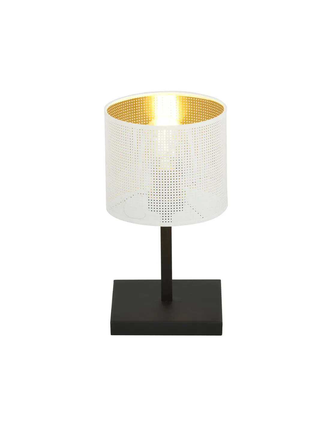 JORDAN wyróżnia się przemyślaną konstrukcją i eleganckimi detalami. Abażur o wymiarach 16x18 cm nadaje jej proporcjonalnego wyglądu, a złote wnętrze wzmacnia efekt świetlny, nadając pomieszczeniu przytulny klimat. Stabilna podstawa o szerokości 16 cm zapewnia pewność ustawienia lampki na stoliku nocnym czy biurku.