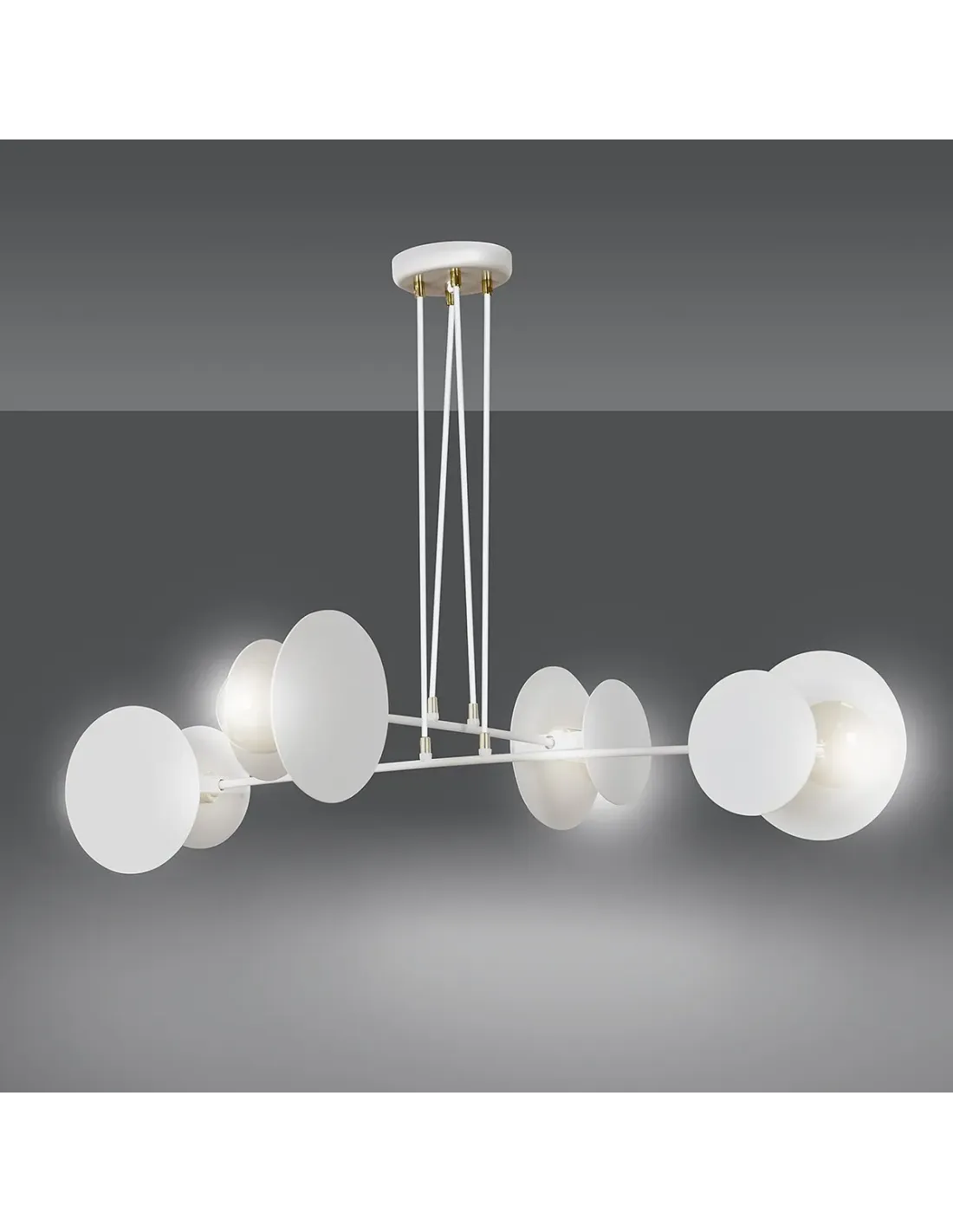 IDEA 4 to lampa wisząca, która od lat cieszy się ogromną popularnością dzięki unikalnemu designowi i ponadczasowej elegancji. Jej forma oparta na geometrycznych kołach natychmiast przyciąga wzrok i nadaje wnętrzu indywidualnego charakteru. Subtelne złote detale dodają całości wyrafinowania i luksusowego wykończenia.