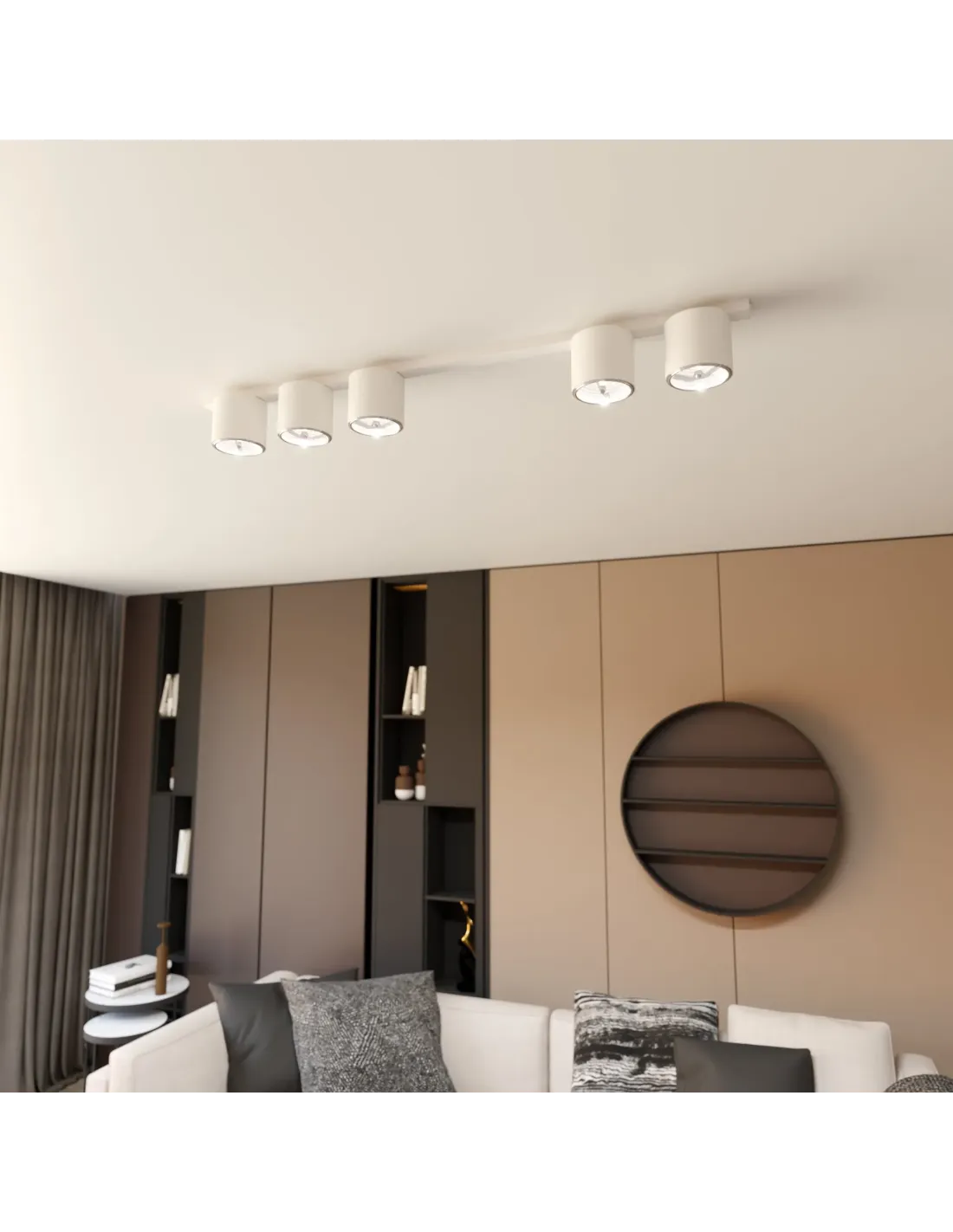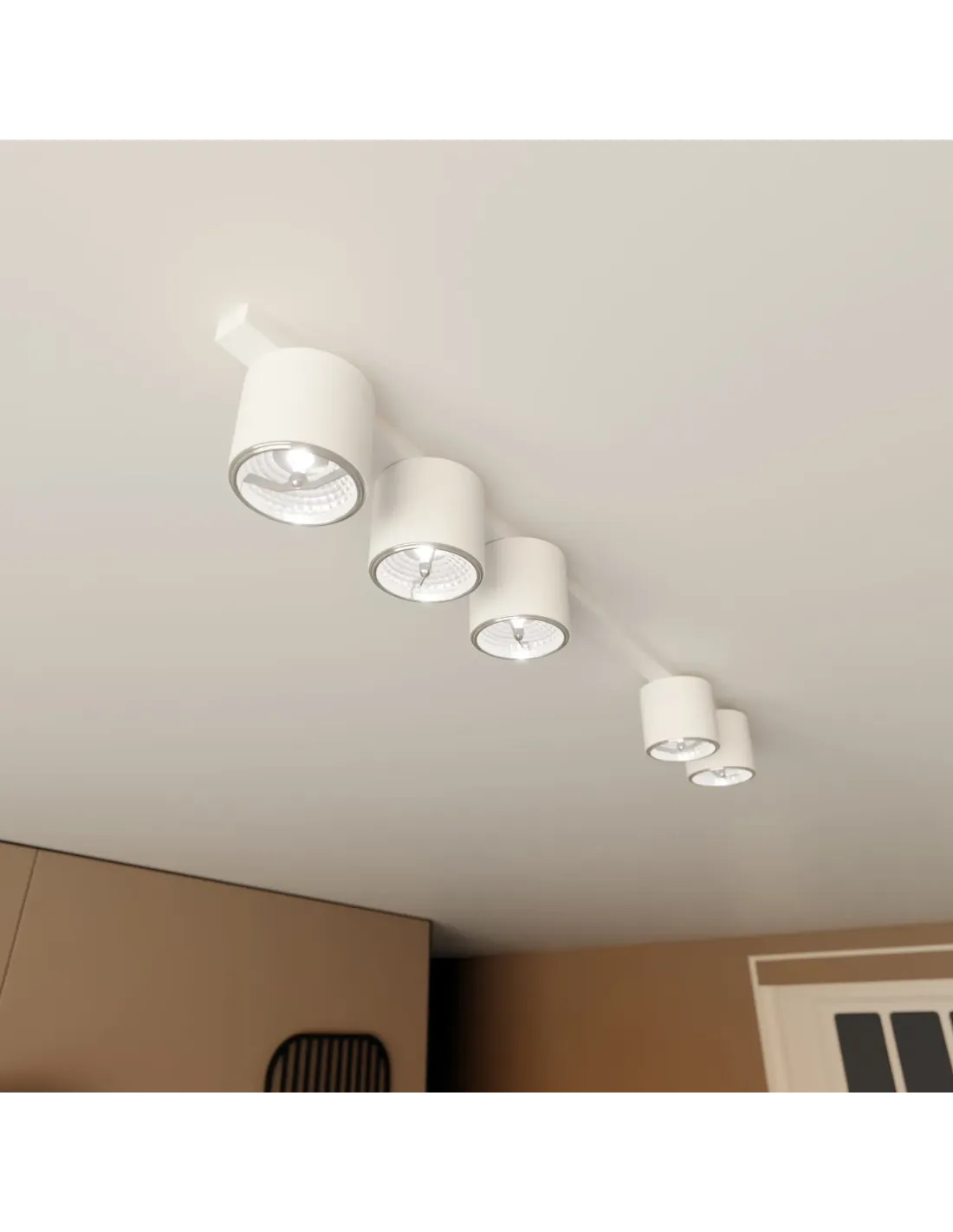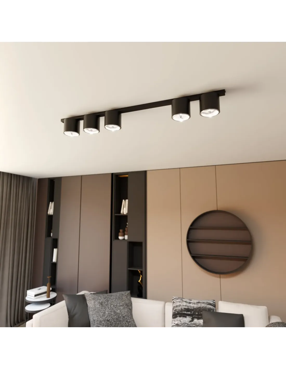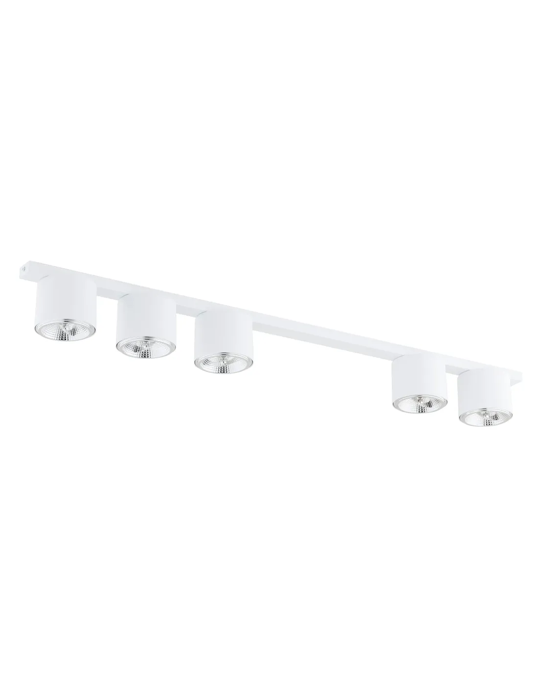 Lampa wyposażona jest w pięć punktów świetlnych z oprawami typu AR-111, które gwarantują doskonałą jasność i szeroki kąt oświetlenia. Metalowa konstrukcja i matowe wykończenie podkreślają nowoczesny charakter produktu, czyniąc go eleganckim dodatkiem do każdego wnętrza.