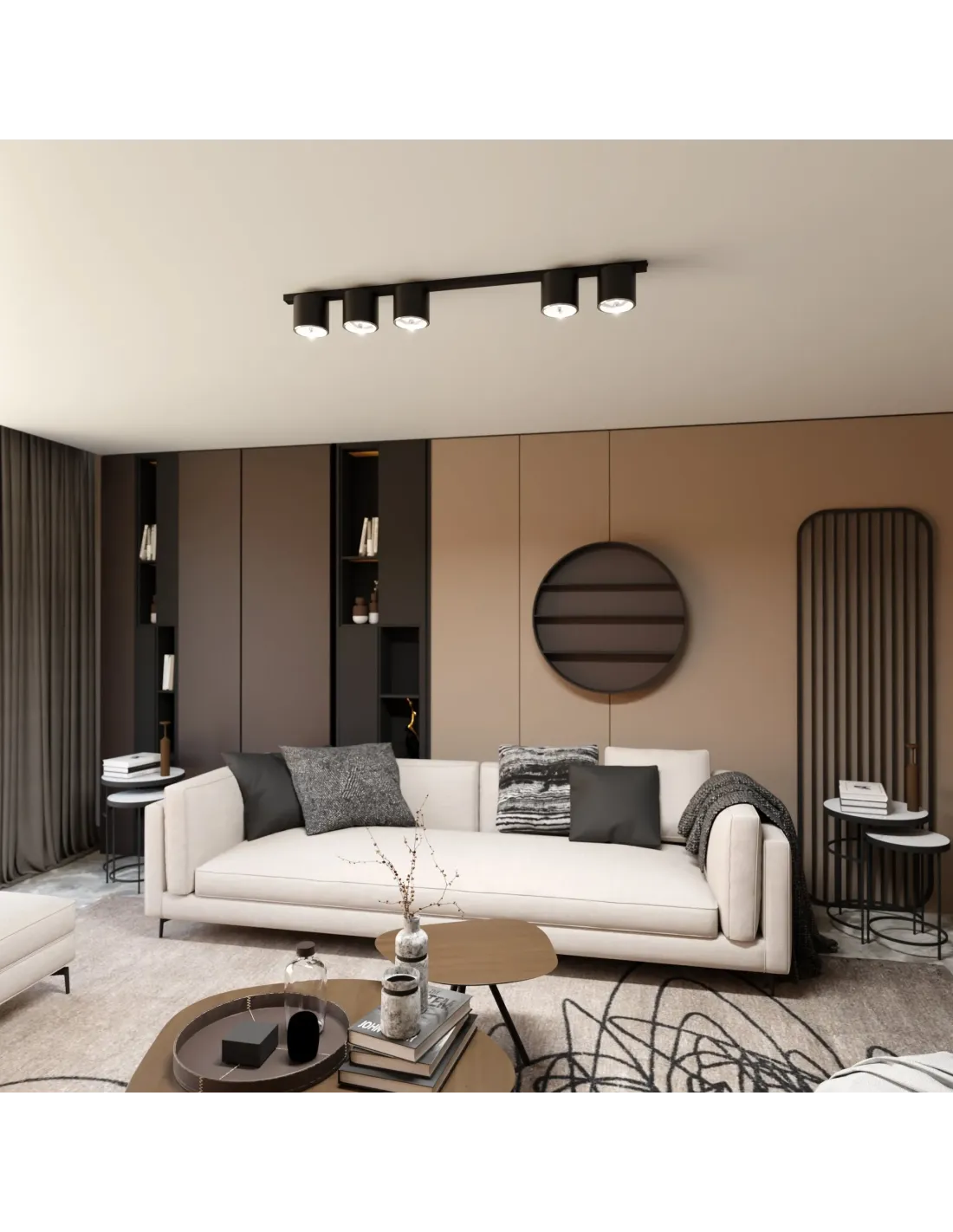 Seria NANO wyróżnia się gładkimi liniami i lekką formą, dzięki czemu pasuje do różnych stylów – od industrialnych, przez nowoczesne, aż po skandynawskie. Pięć źródeł światła umieszczonych w równych odstępach zapewnia intensywne i równomierne oświetlenie, które doskonale sprawdzi się w przestronnych salonach, biurach czy jadalniach.