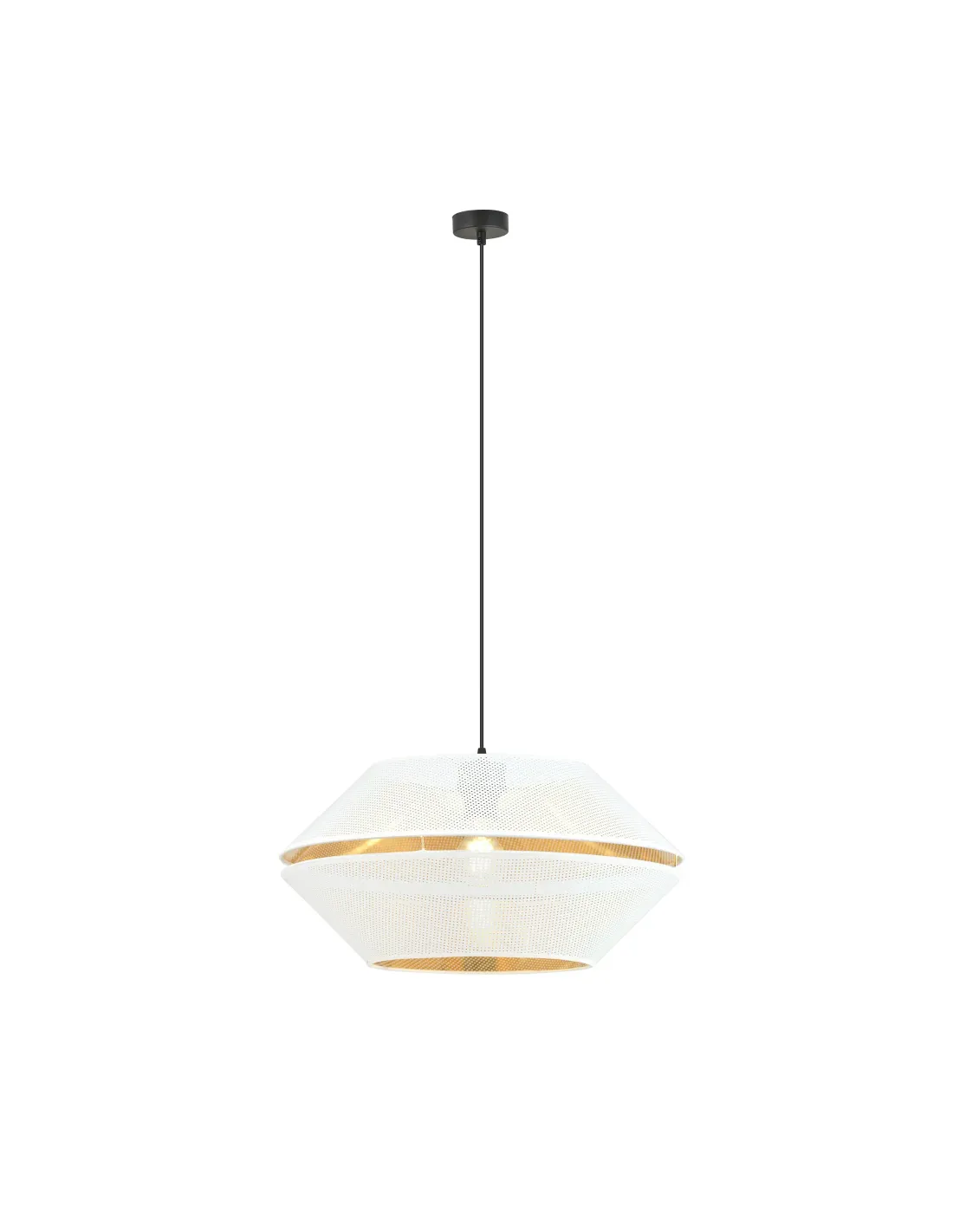 - Złote wnętrze abażura tworzy nastrojowe światło
