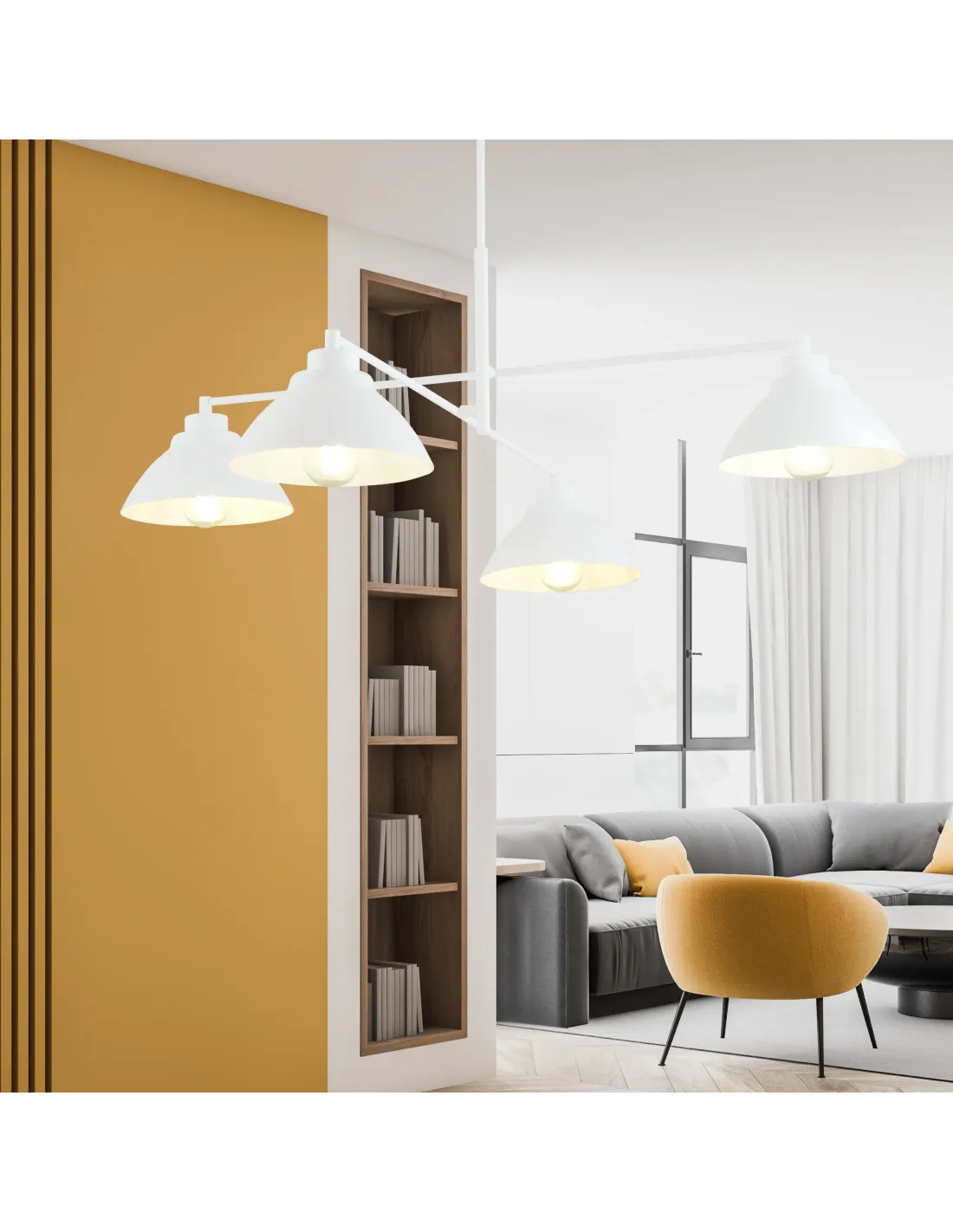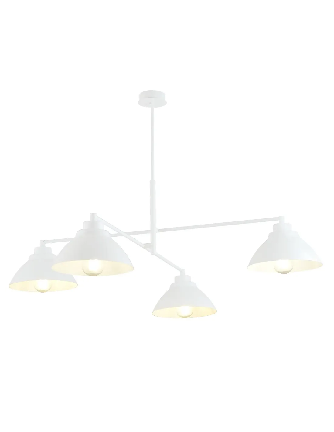 Industrialna stylistyka lampy podkreślona została przez surowe wykończenie kloszy oraz jednolitą kolorystykę. Klasyczna czerń doda wnętrzu głębi i charakteru, natomiast opcja w białym kolorze wprowadzi do pomieszczenia świeżość i lekkość. MAVERICK w wersji 4-punktowej idealnie sprawdzi się jako oświetlenie nad stołem, kuchenną wyspą czy w salonie, gdzie pełnić będzie zarówno funkcję praktyczną, jak i estetyczną.