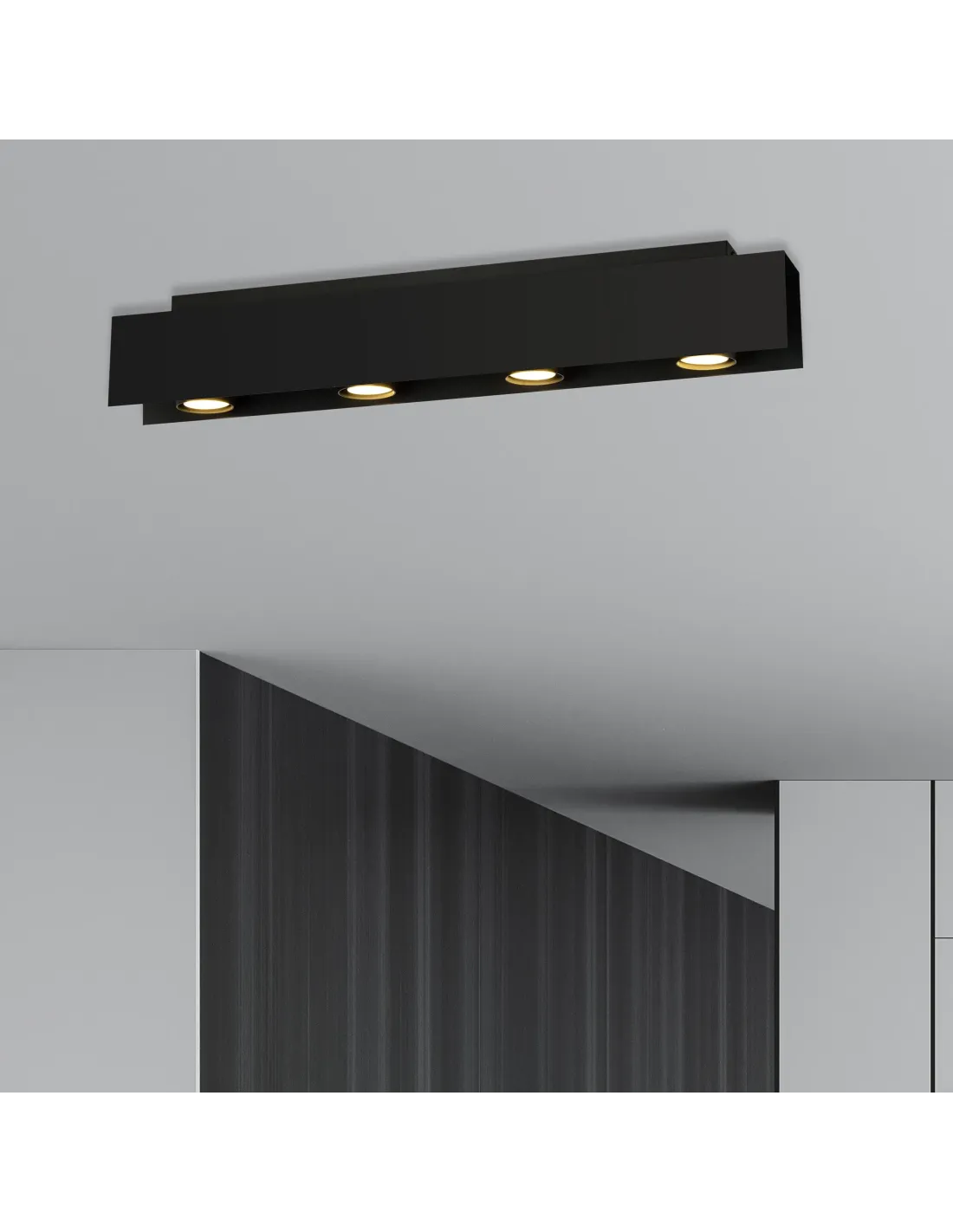 Dzięki czterem źródłom światła typu GU10, lampa KENNO równomiernie oświetla przestrzeń, nie dominując jej wizualnie. Z szerokością 72 cm i wysokością 12 cm model ten znakomicie sprawdzi się w salonie, kuchni, jadalni lub biurze. Zapewnia optymalną ilość światła przy zachowaniu spójności stylistycznej całego pomieszczenia.