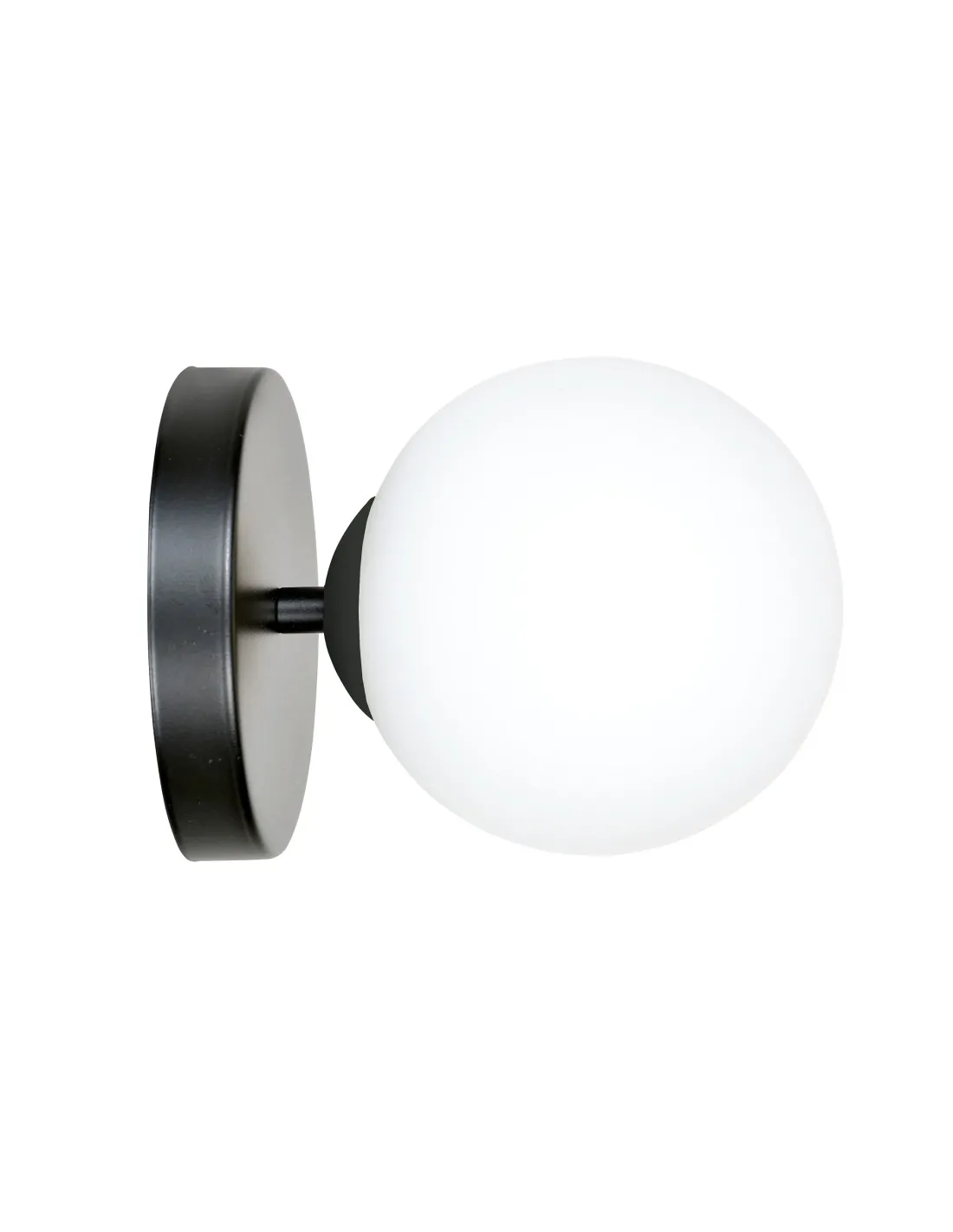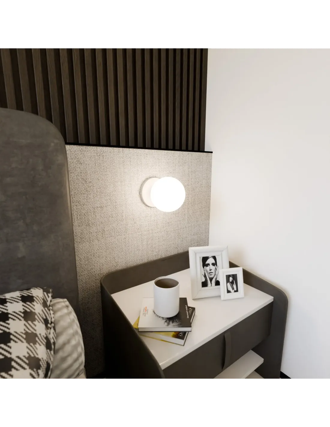 Mleczny klosz rozprasza światło w sposób równomierny i łagodny, a oprawa lampy – dostępna w czerni lub bieli – doskonale komponuje się z innymi elementami wyposażenia wnętrza. Stopień ochrony IP20 czyni kinkiet odpowiednim do zastosowania w suchych, domowych przestrzeniach.