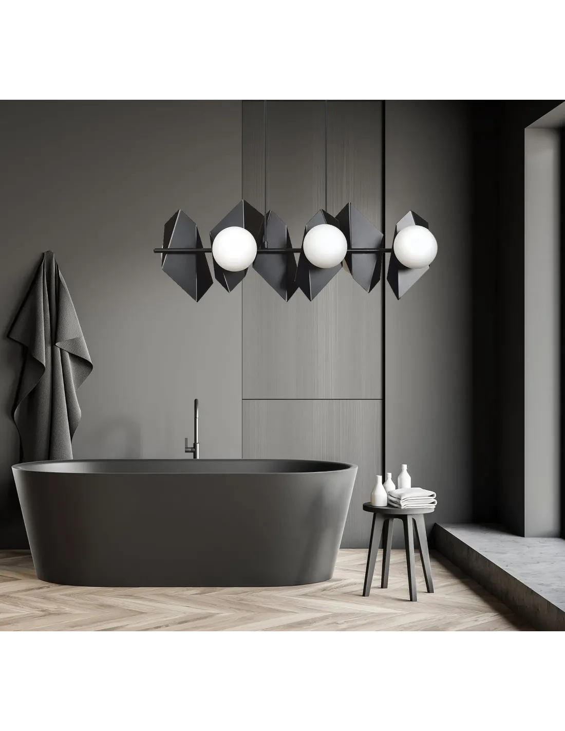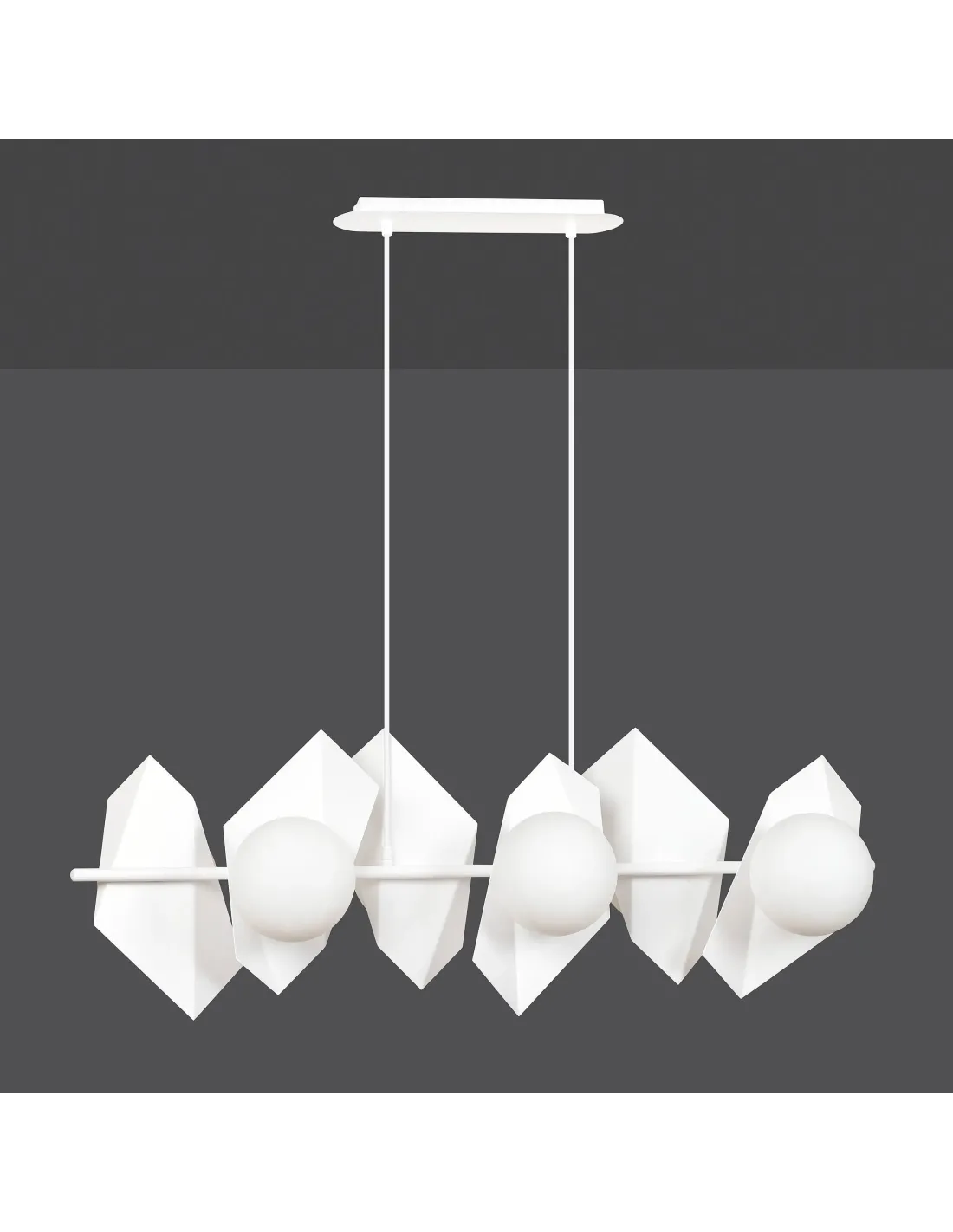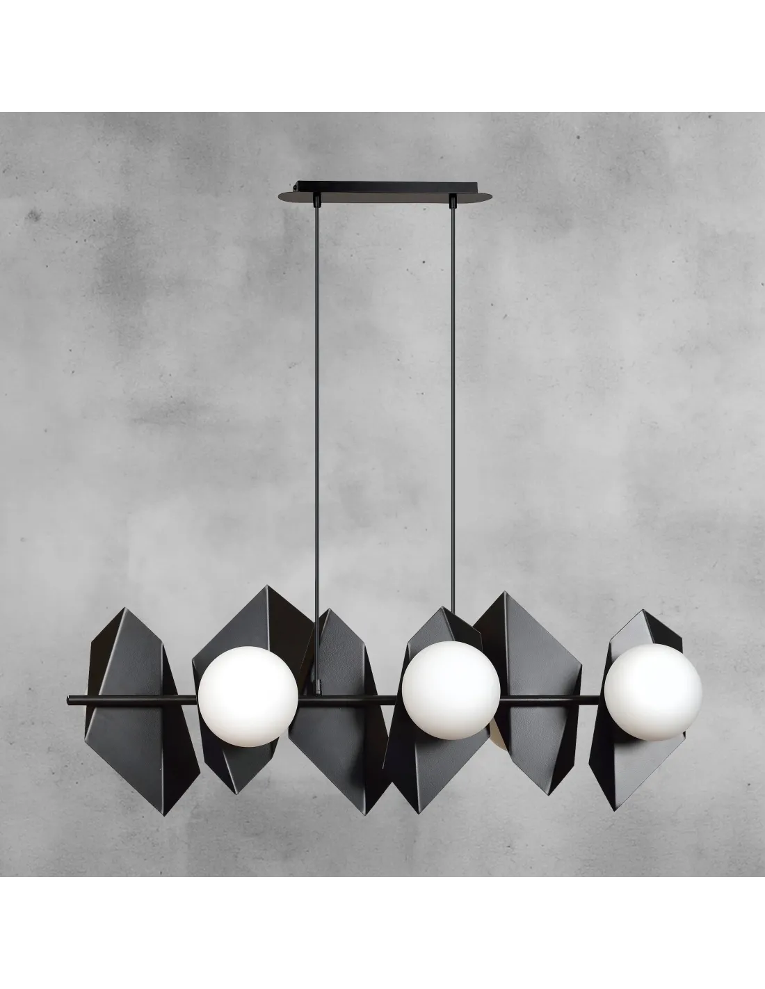 DRIFTON 6 to nie tylko źródło światła, ale również kompozycja przestrzenna, która organizuje wnętrze i buduje jego charakter. Geometryczne, stalowe ramiona lampy tworzą spójną, a zarazem dynamiczną formę, z której zwisają szklane klosze. Mleczne szkło rozprasza światło w sposób łagodny, tworząc przyjazną, ciepłą atmosferę bez efektu olśnienia.
