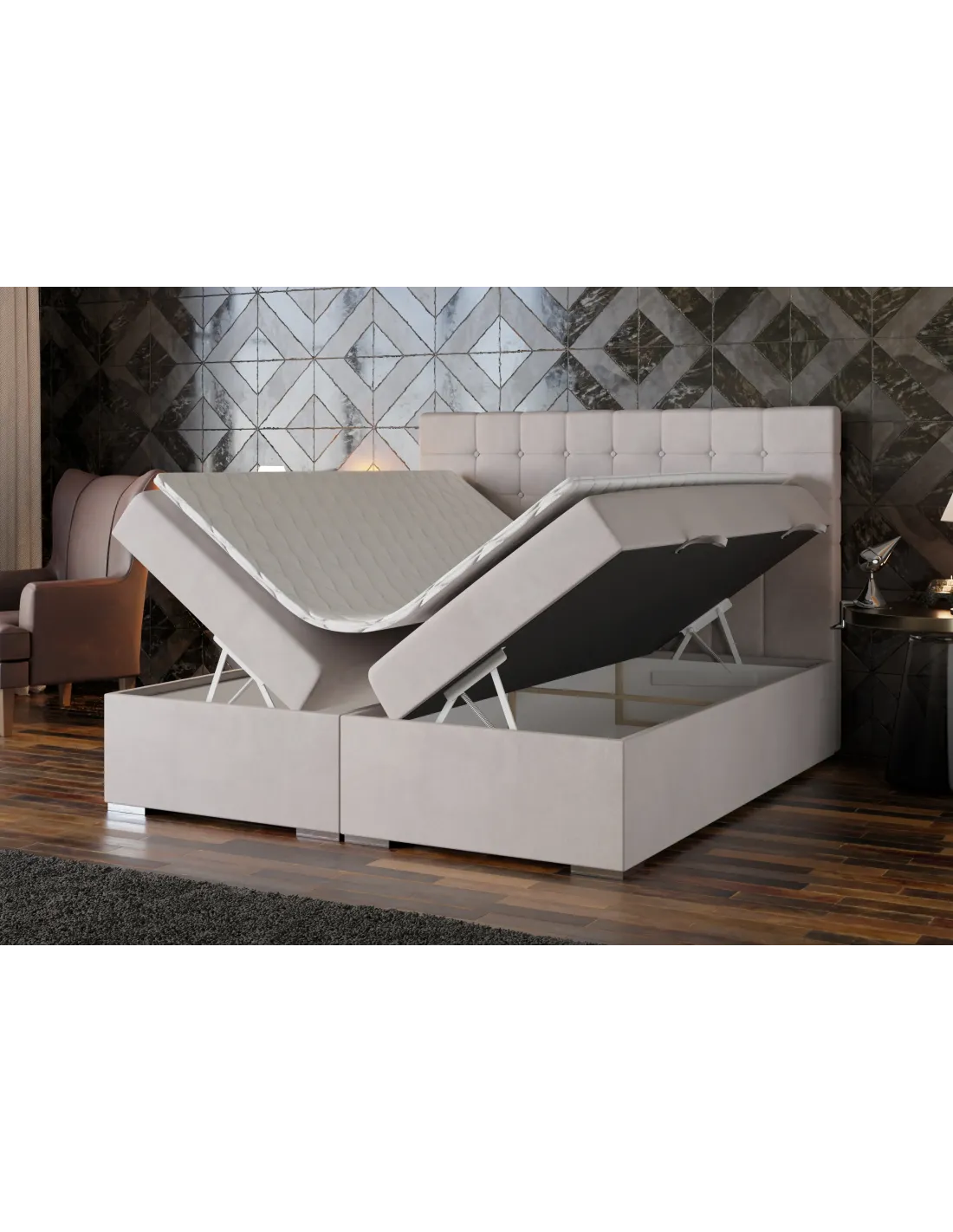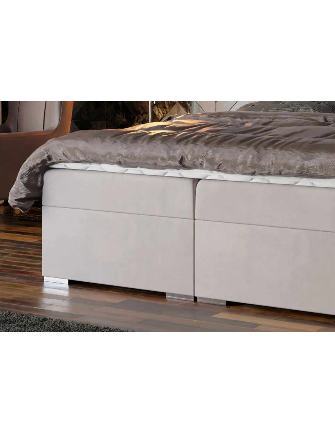 Łóżko CLAUDIA LAVERTO wyróżnia się nie tylko wyglądem, ale i przemyślaną funkcjonalnością. W jego podstawie znajdują się dwie pojemne skrzynie na pościel otwierane z boków, co pozwala na swobodny dostęp i efektywne wykorzystanie przestrzeni. Modele od szerokości 120 cm wyposażone są w dwa niezależne boxy, co ułatwia korzystanie z pojemników z każdej strony łóżka.