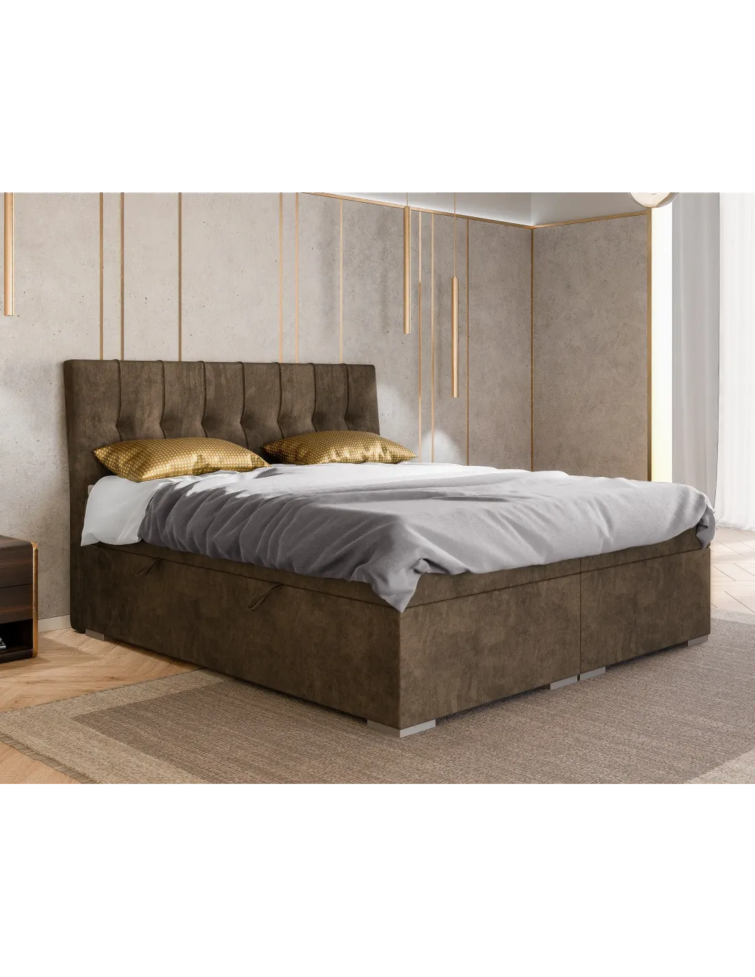 Nowoczesne i eleganckie łóżko tapicerowane DAILY LAVERTO to połączenie stylu, wygody i funkcjonalności w doskonałych proporcjach. Charakterystyczne pionowe przeszycia na wezgłowiu uzupełnione rzędem dekoracyjnych guzików nadają całości klasycznego uroku i harmonii. Subtelne wykończenia i wyważony design sprawiają, że łóżko DAILY świetnie wkomponuje się zarówno w nowoczesne, jak i bardziej tradycyjne aranżacje sypialni.