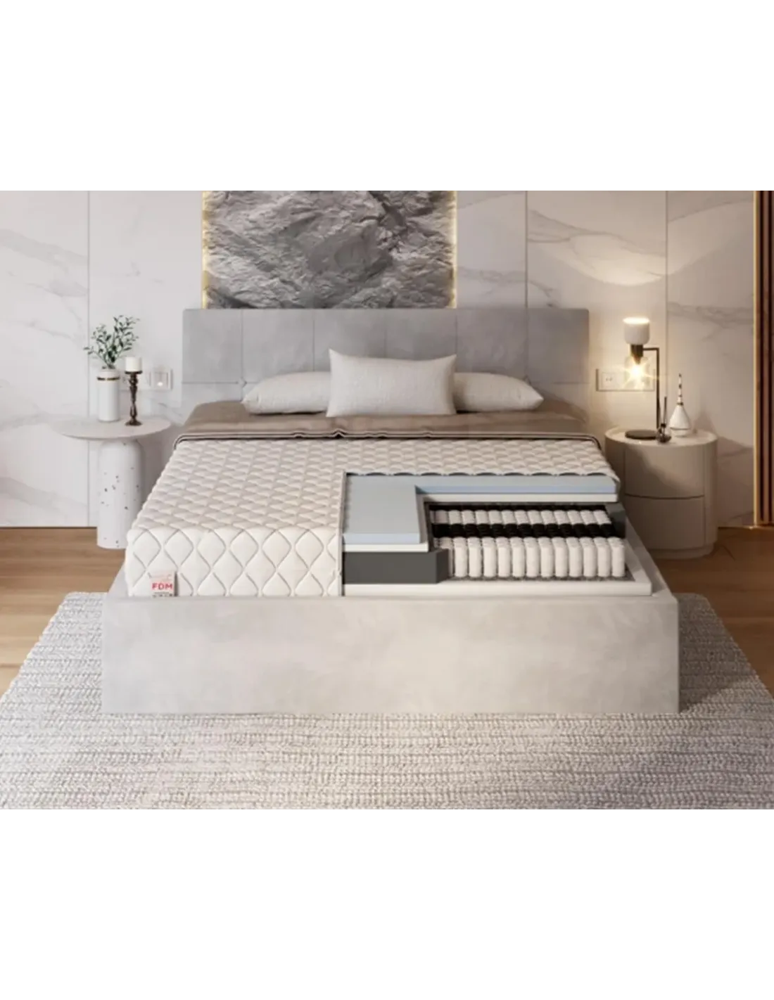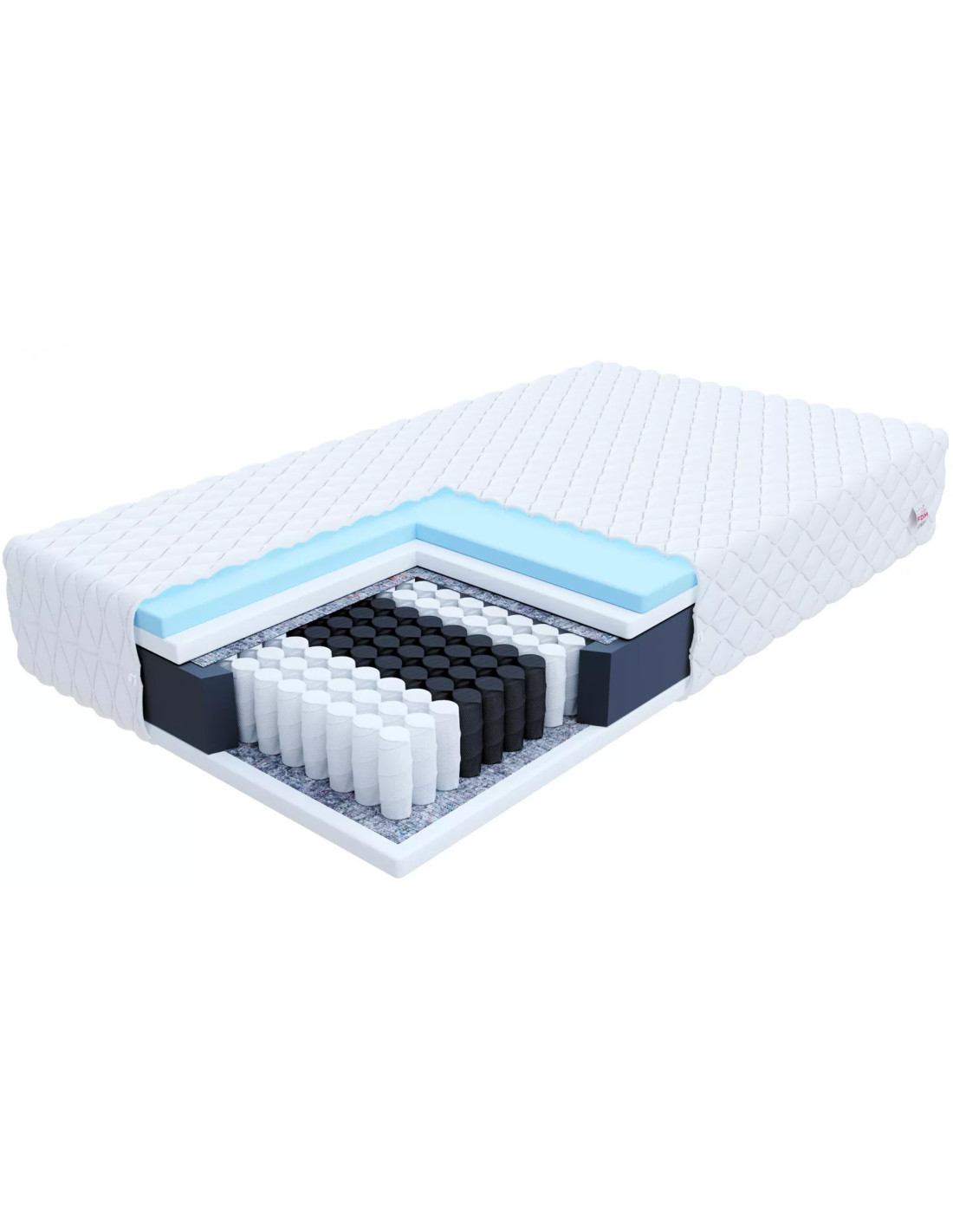 Sercem materaca ENNA FDM jest nowoczesny wkład sprężynowy typu pocket, w którym każda sprężyna działa niezależnie w oddzielnej kieszeni. Taka konstrukcja sprawia, że materac precyzyjnie dopasowuje się do kształtu ciała i reaguje na nacisk punktowy, co pomaga utrzymać kręgosłup w optymalnej, naturalnej pozycji przez całą noc.