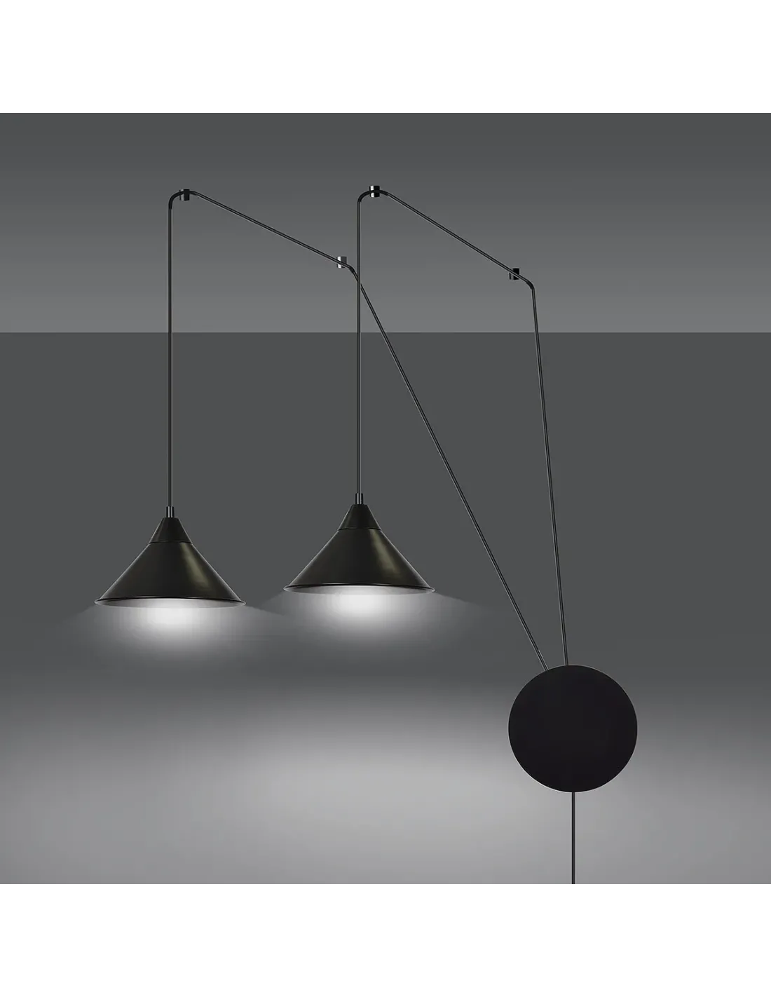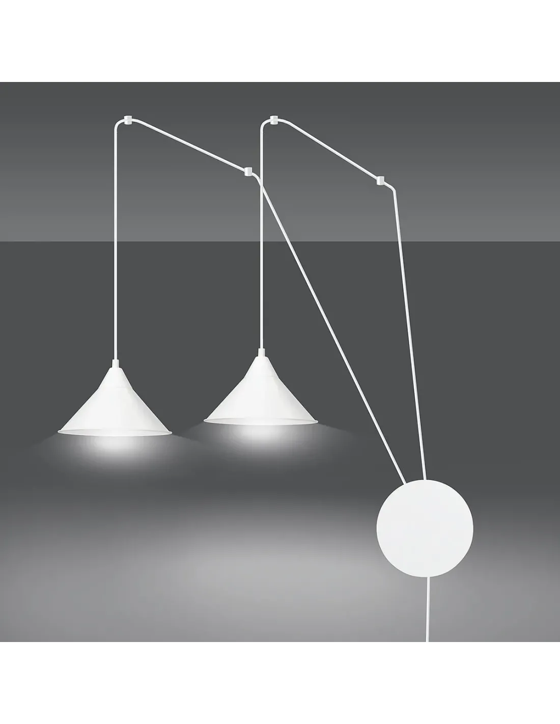 Lampa ABRAMO 2 wyróżnia się przede wszystkim możliwością personalizacji układu dzięki dwóm niezależnym przewodom. Pozwala to nie tylko na równomierne rozłożenie źródeł światła, ale również na tworzenie asymetrycznych, dynamicznych aranżacji świetlnych. Każdy przewód może prowadzić w innym kierunku, co czyni tę lampę wyjątkową pod względem estetyki i funkcji.
