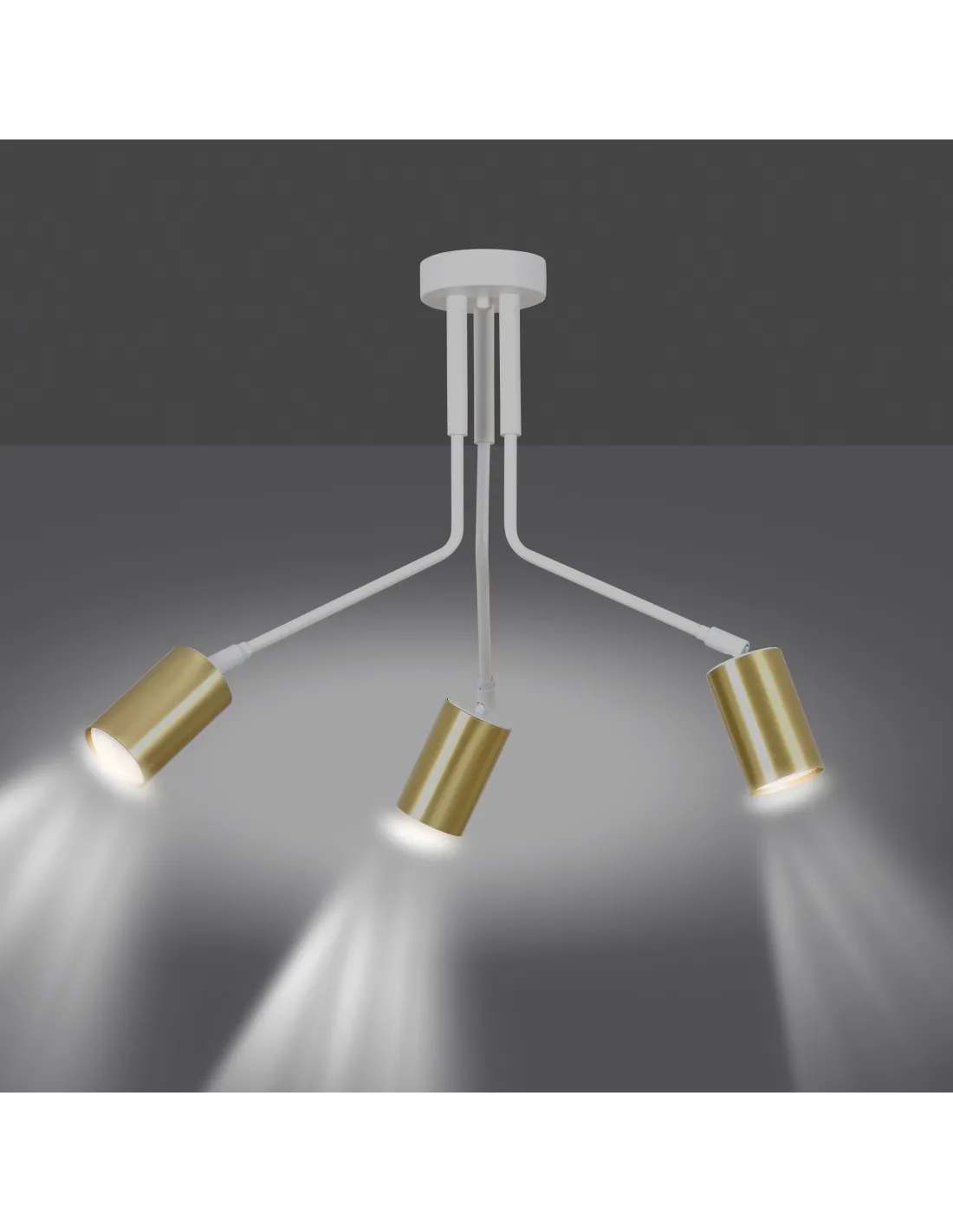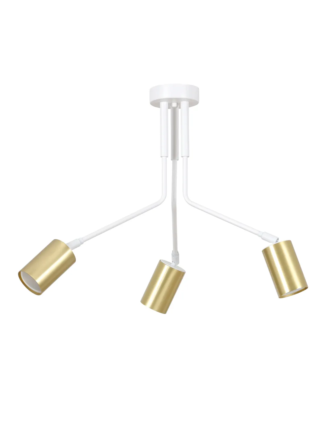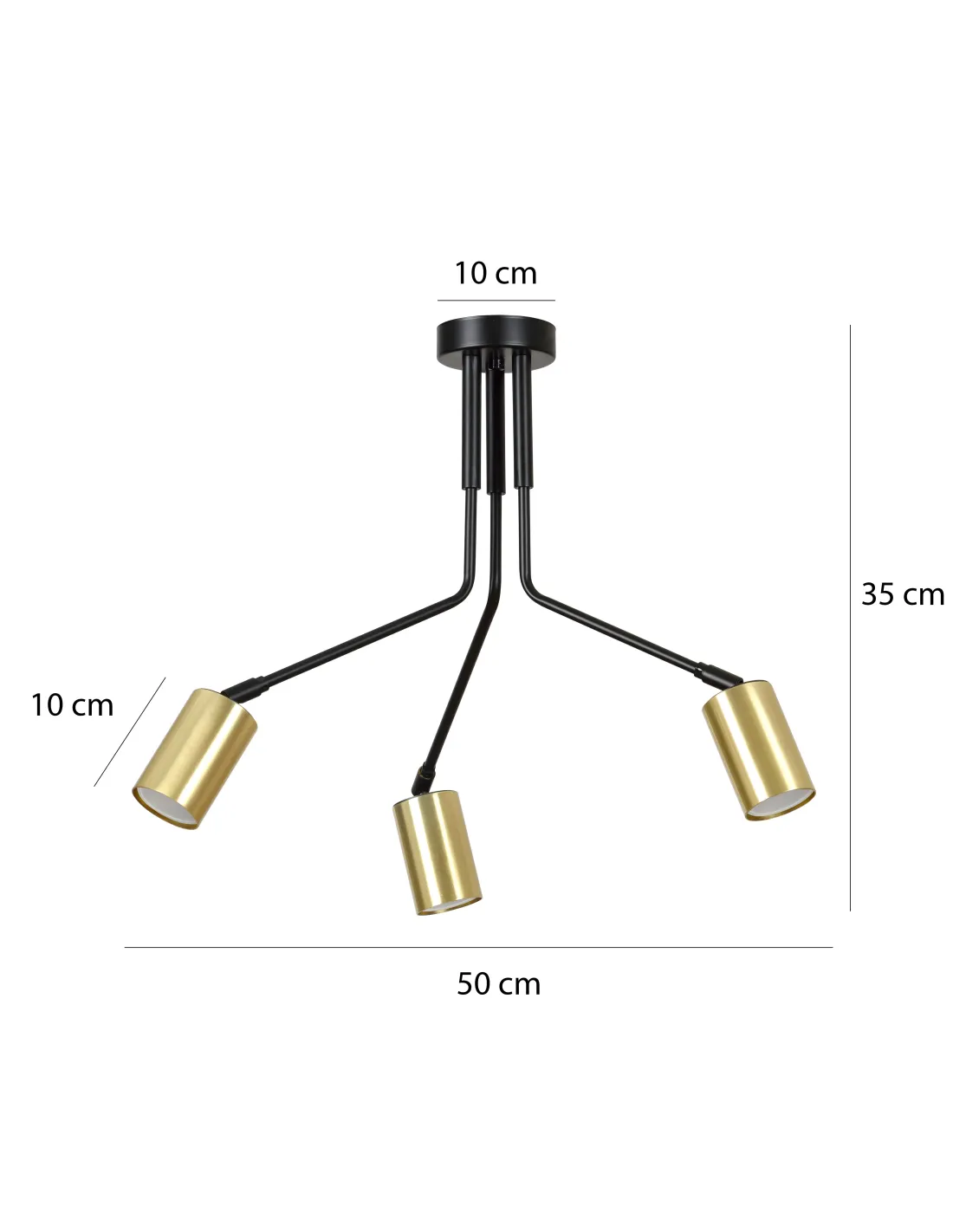 VERNO zachwyca nietuzinkową formą, której głównym atutem są symetrycznie rozmieszczone źródła światła w oprawkach GU10. Dzięki złotym wykończeniom, lampa wprowadza do wnętrza ciepło i elegancję, jednocześnie zachowując surowość i funkcjonalność typową dla stylu industrialnego. Jej kompaktowa konstrukcja doskonale sprawdzi się zarówno w niskich, jak i wyższych pomieszczeniach, takich jak kuchnie, salony, przedpokoje czy sypialnie.