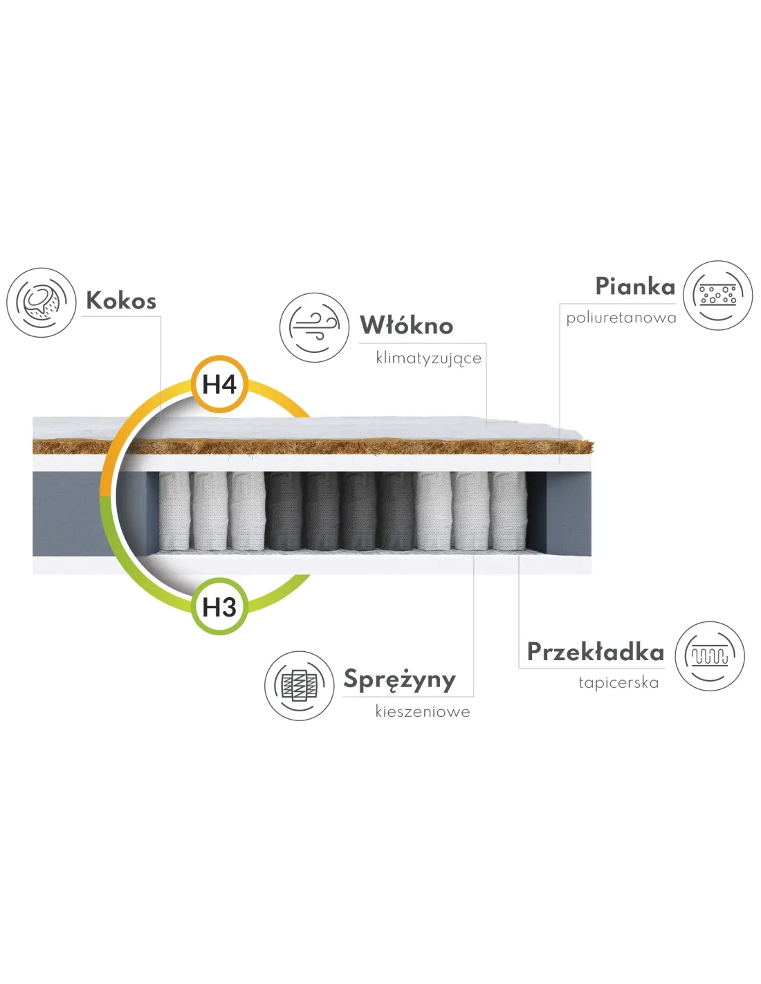 • Warstwa kokosu – naturalna wentylacja i zwiększona twardość