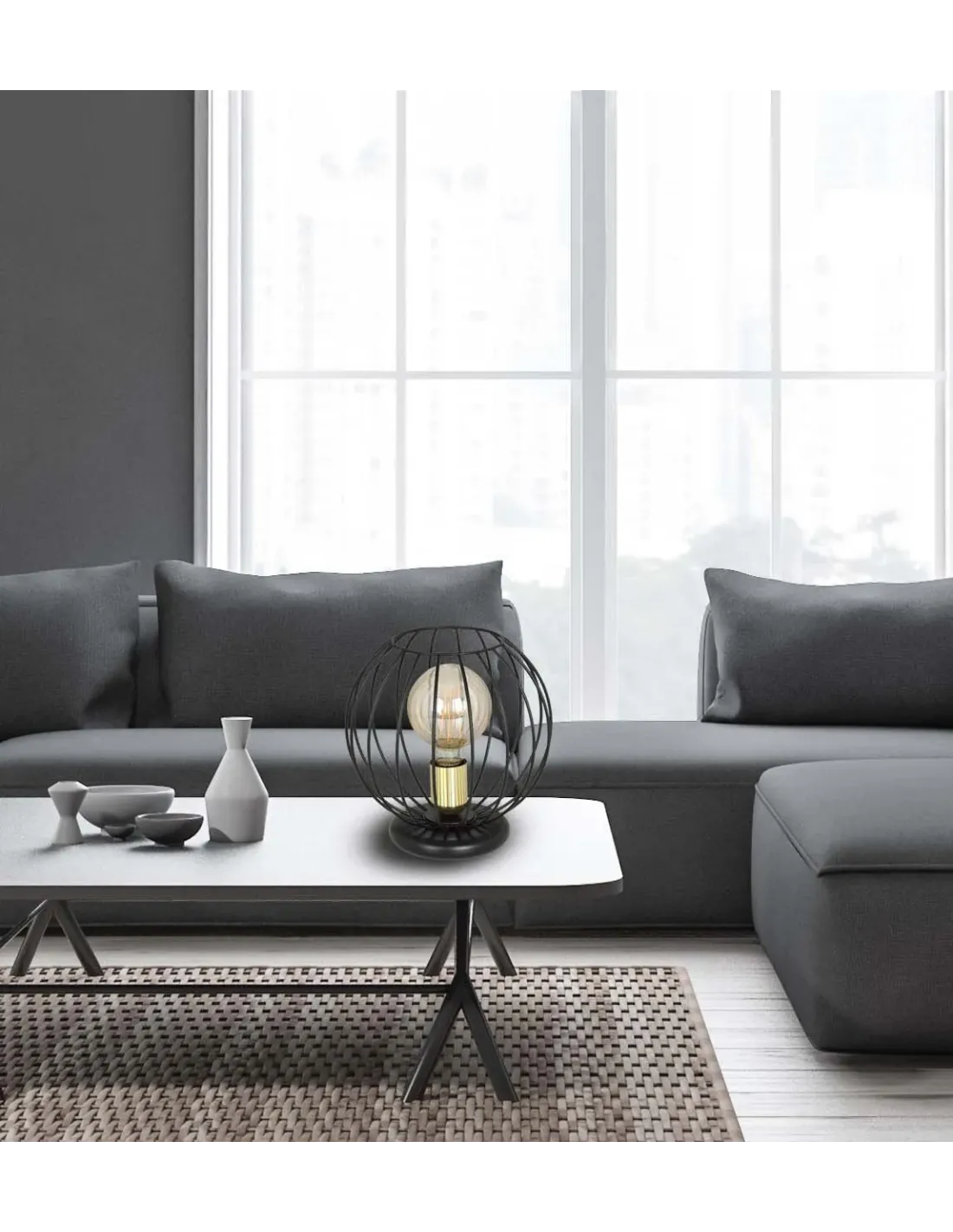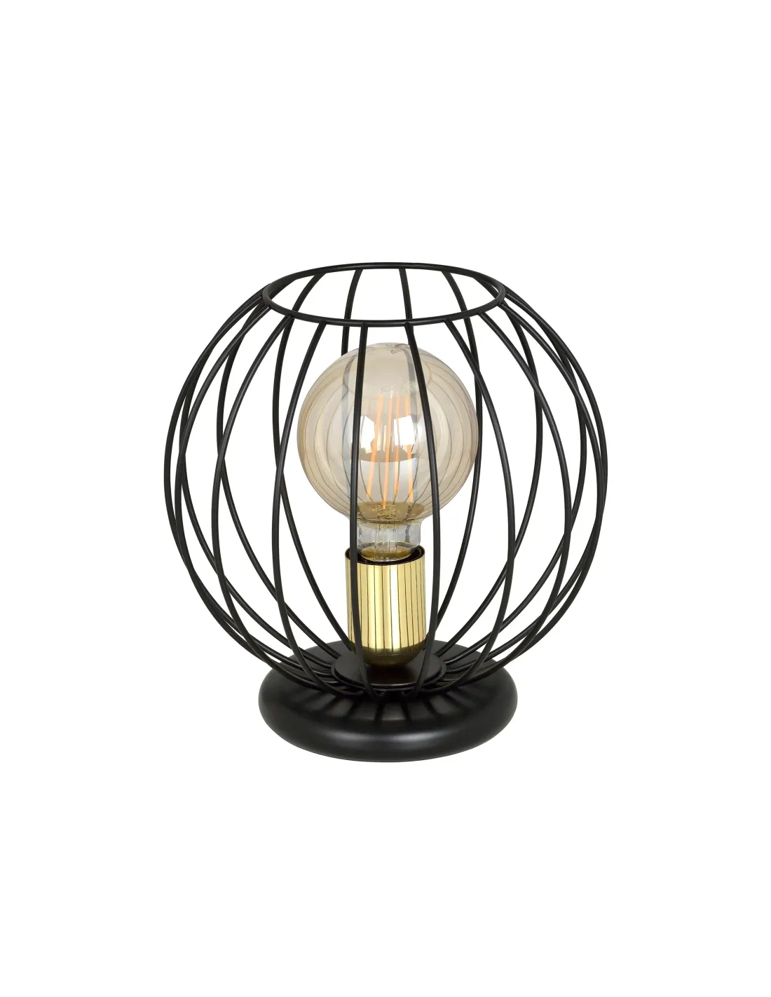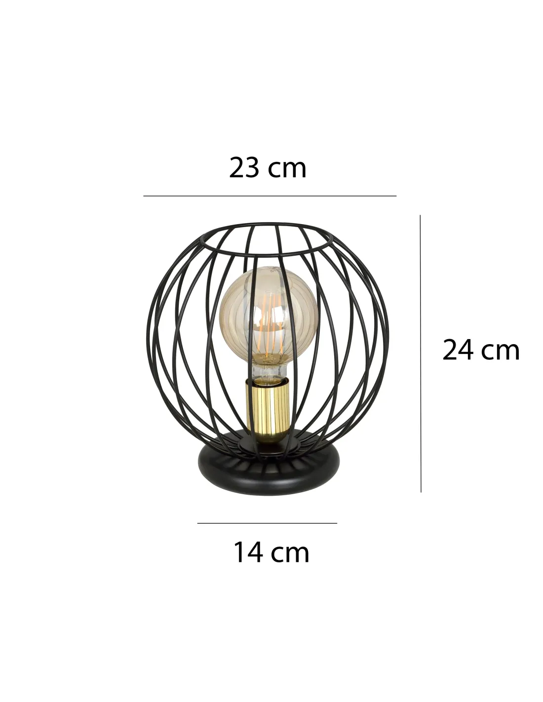 Druciany klosz (23 × 23 cm) daje interesujący efekt światła i cienia, natomiast złote detale subtelnie nadają luksusowy akcent. Choć lampka nie posiada regulowanej wysokości, jej niewielki wymiar sprawia, że sprawdzi się w większości pomieszczeń.