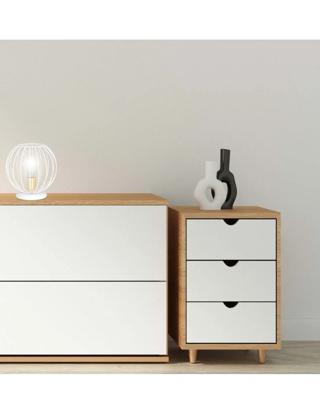 Konstrukcja lampki ALBIO została zaprojektowana i wykonana w Polsce, z dbałością o jakość materiałów i solidność montażu. Jej kompaktowe wymiary i dekoracyjny charakter czynią ją idealnym wyborem jako oświetlenie przy łóżku, na stolik nocny lub komodę.