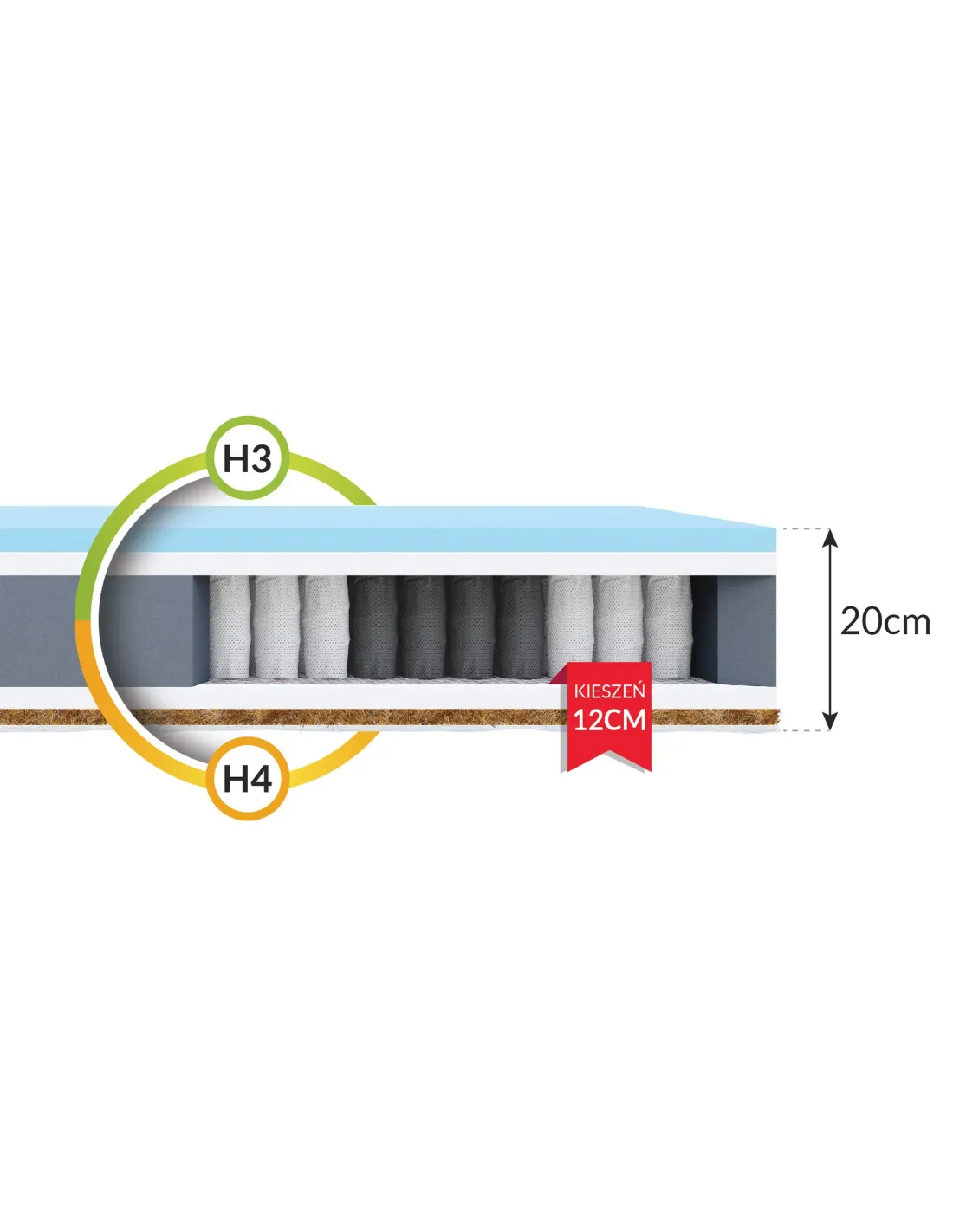 Połączenie pianki wysokoelastycznej HR, kokosu i pianki poliuretanowej gwarantuje trwałość i odporność na odkształcenia, a jednocześnie świetną przewiewność i higieniczność. To doskonały wybór dla osób z problemami kręgosłupa, seniorów oraz wszystkich, którzy cenią zdrowy sen na najwyższym poziomie.