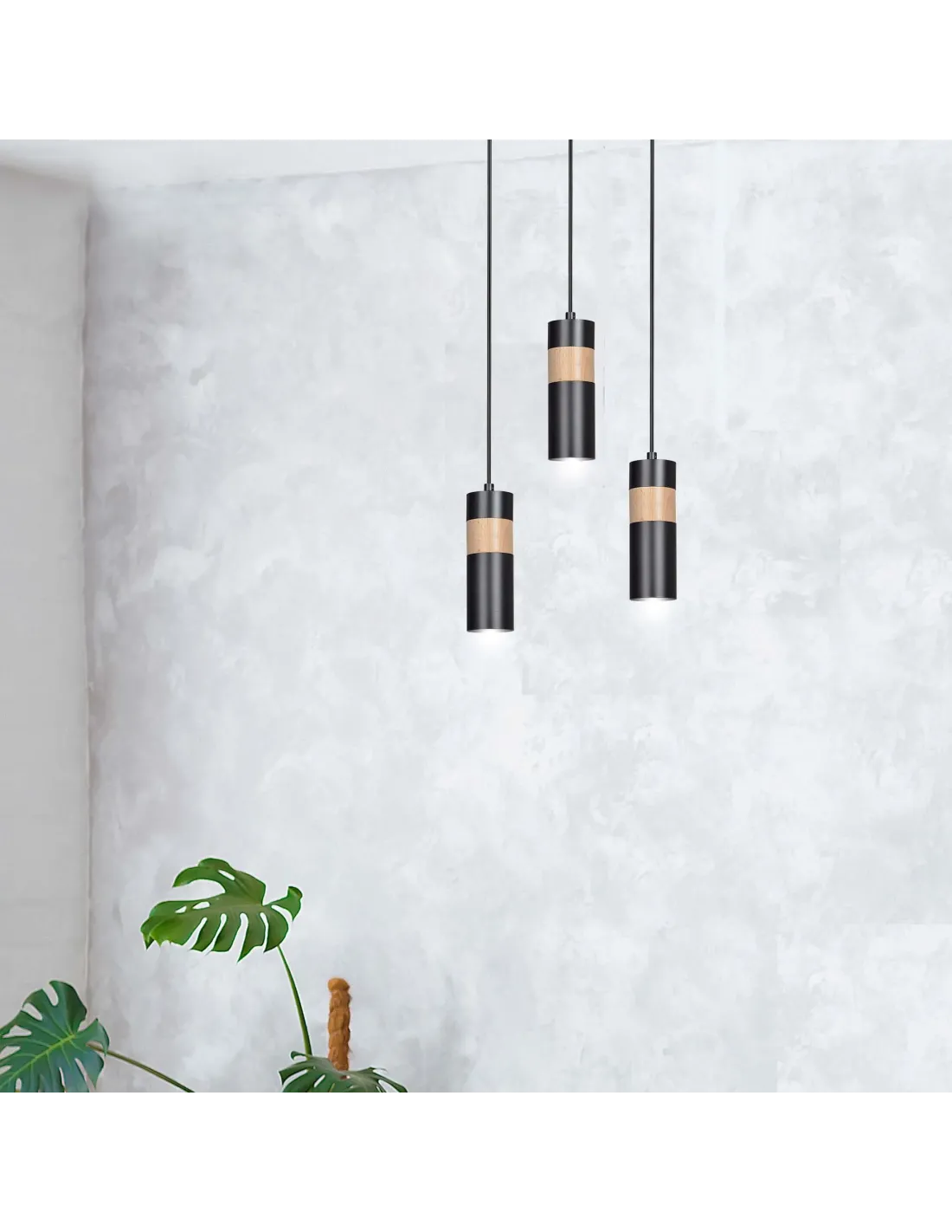Nowoczesna lampa wisząca z drewnianym akcentem