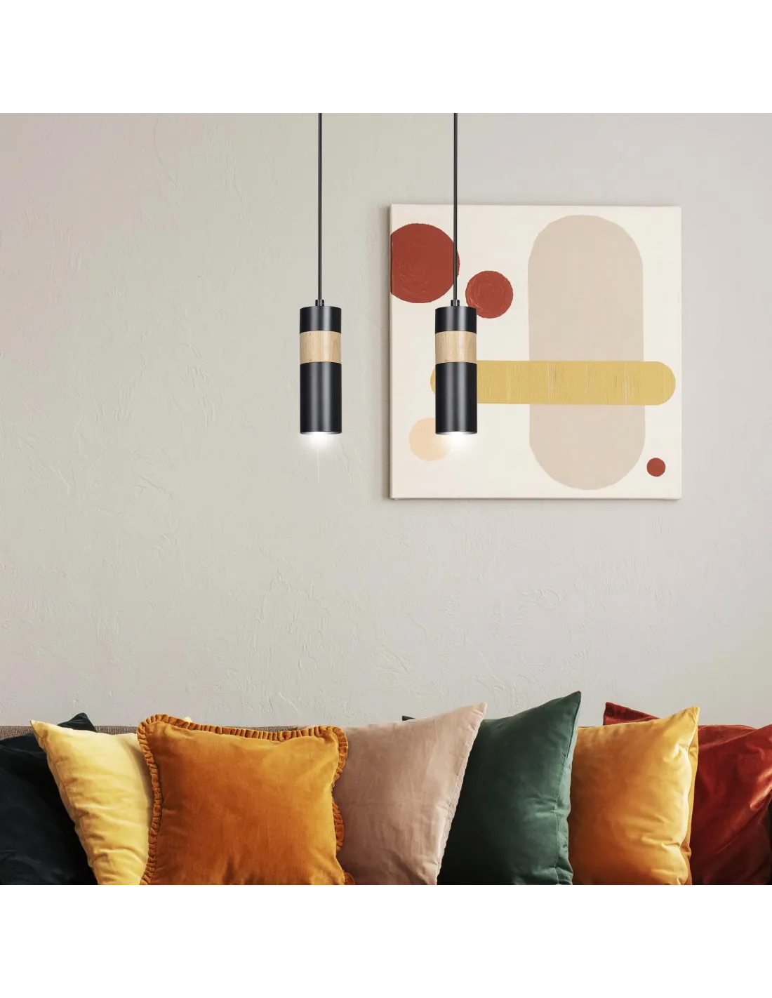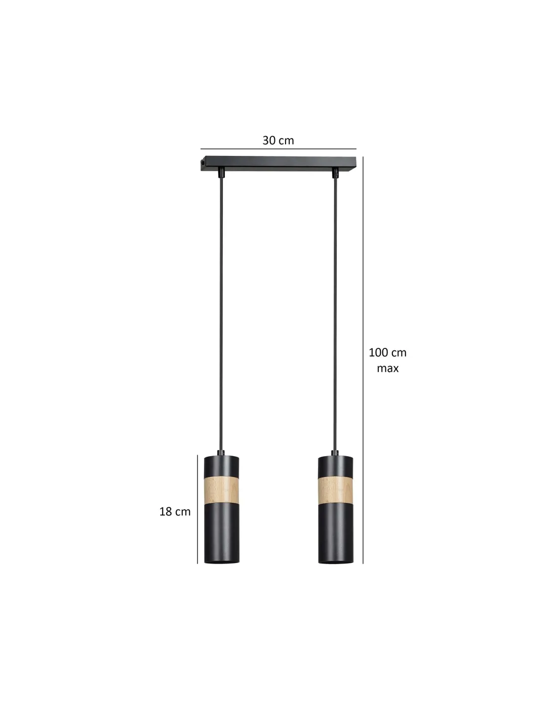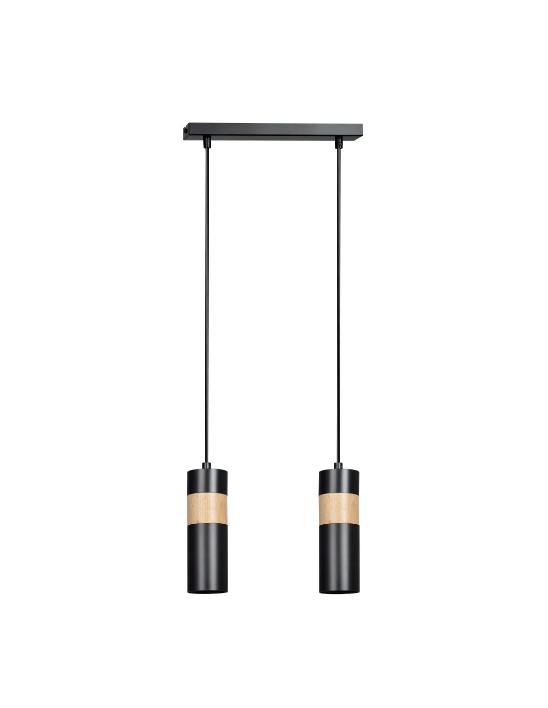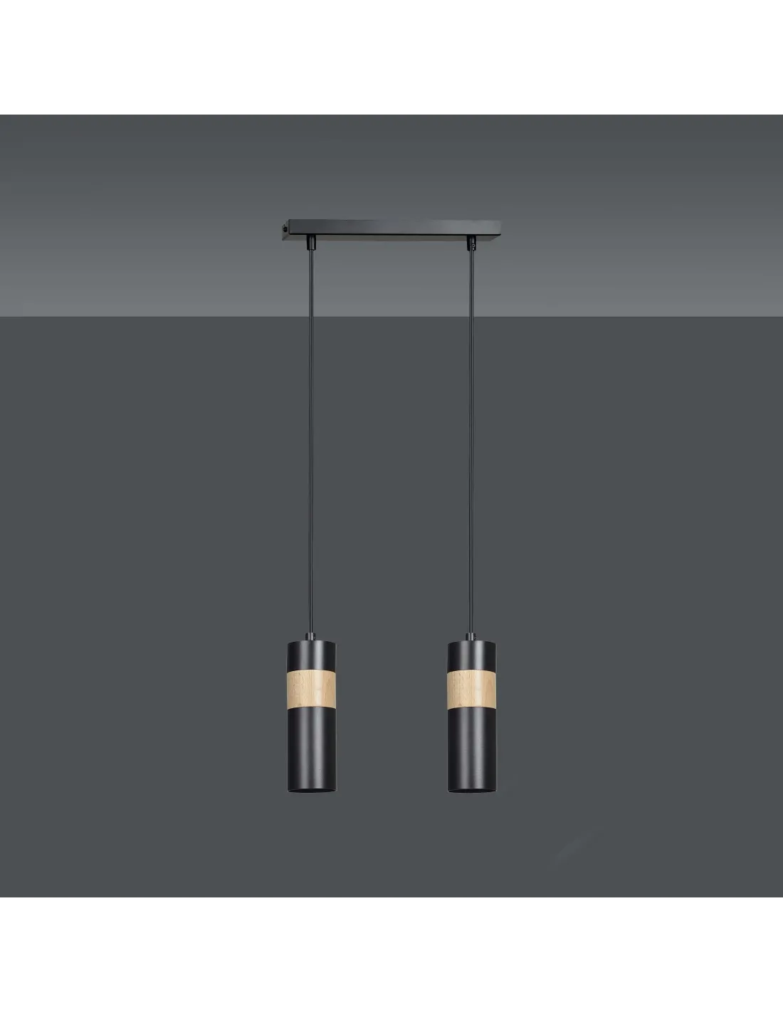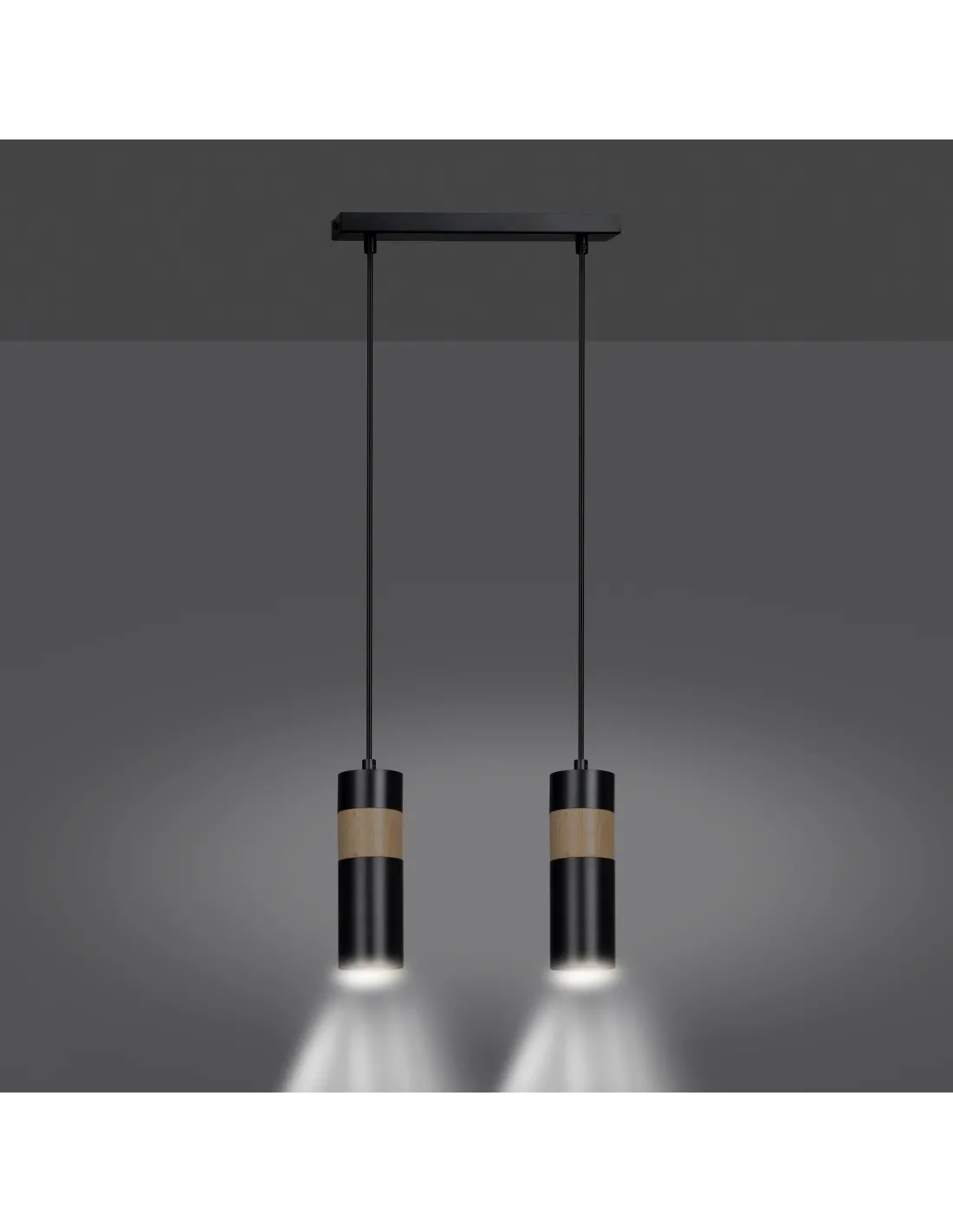 AKARI w wersji 2-punktowej to stylowy wybór do współczesnych wnętrz. Każda z dwóch tub w kolorze czarnym została zwieńczona dekoracyjnym pierścieniem z naturalnego drewna, który ociepla jej nowoczesny wygląd. Dzięki regulacji długości zawieszenia, lampa sprawdza się zarówno w niskich pomieszczeniach, jak i w wysokich loftowych przestrzeniach. Idealnie wygląda pojedynczo lub jako część większej kompozycji świetlnej, np. w kuchni nad wyspą lub stołem.