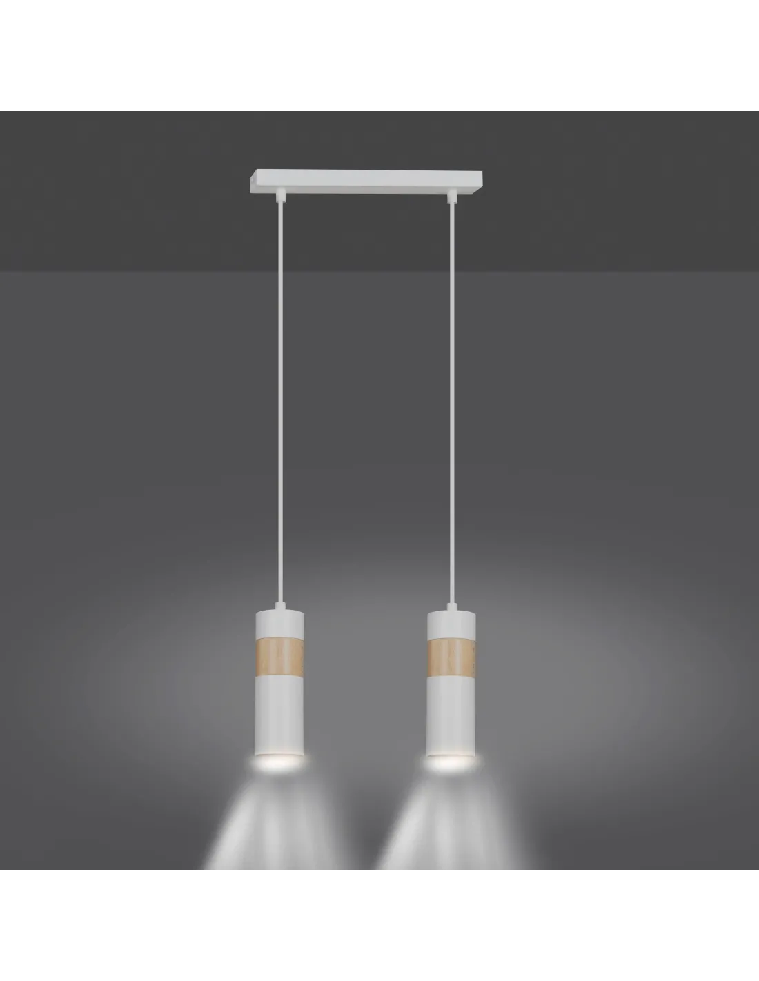 Lampa wyposażona jest w dwa punkty świetlne z oprawkami GU10, które idealnie sprawdzą się jako oświetlenie funkcjonalne nad blatem kuchennym, w jadalni, przedpokoju czy gabinecie. Wysokość zawieszenia lampy jest regulowana – do 100 cm – co pozwala idealnie dostosować ją do wymagań konkretnego wnętrza i uzyskać optymalne warunki świetlne.