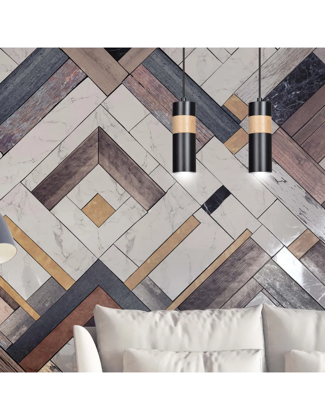 Nowoczesna lampa wisząca z drewnianymi akcentami