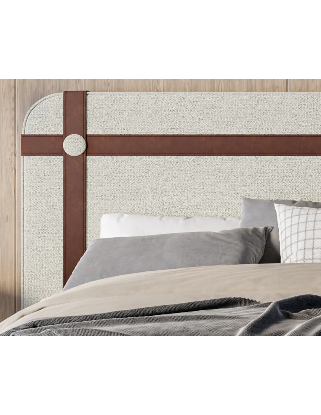 • Zaokrąglone wezgłowie z ozdobnymi pasami z ekoskóry