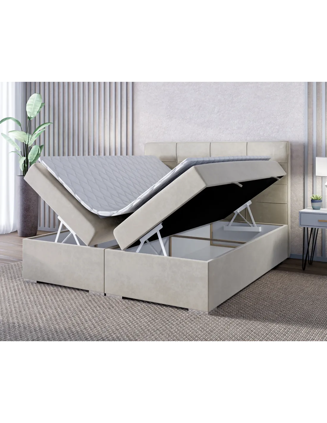 Dla zapewnienia najwyższej jakości snu łóżko LOFT LAVERTO oferuje różne konfiguracje materacy i topperów, które można dopasować do indywidualnych preferencji. Materac bonellowy gwarantuje równomierne rozłożenie ciężaru ciała, co sprzyja spokojnemu i zdrowemu wypoczynkowi. Materac kieszeniowy z niezależnymi sprężynami w kieszeniach idealnie dopasowuje się do kształtu ciała, oferując punktowe podparcie i zwiększony komfort.