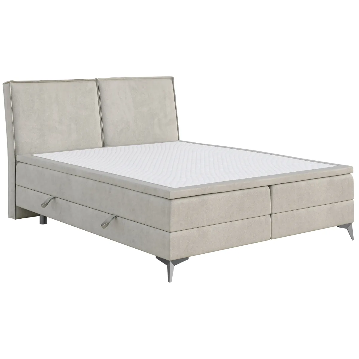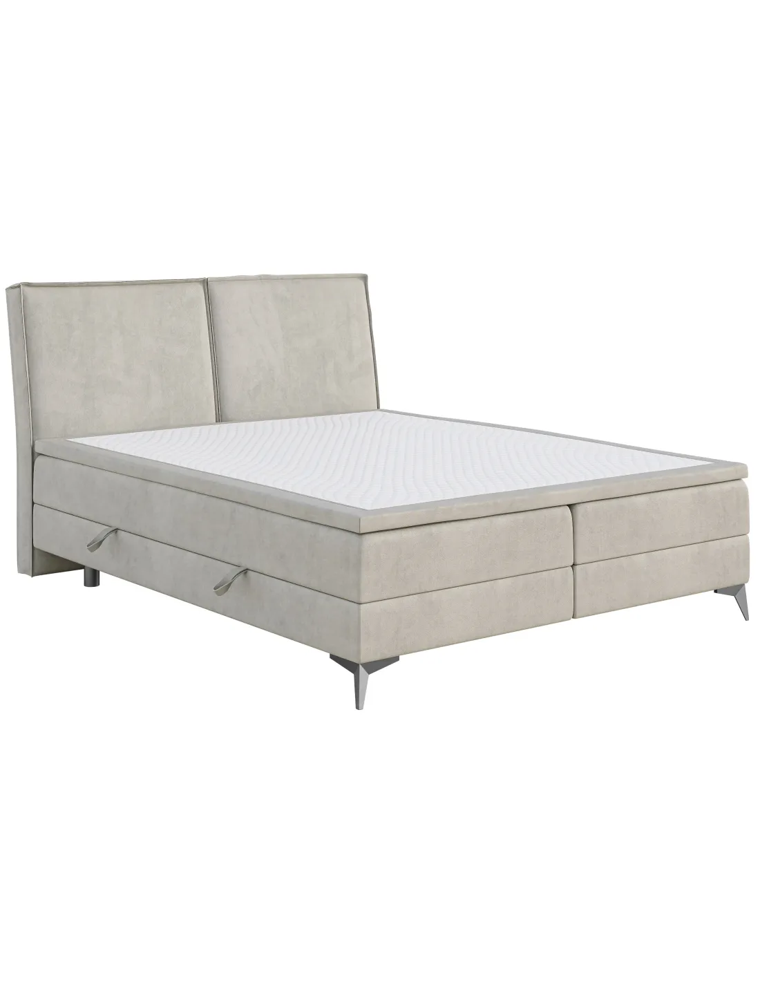 Łóżko w standardzie wyposażone jest w materac bonellowy o wysokości 20 cm oraz topper z pianki poliuretanowej T25 o grubości 5 cm, który dodatkowo zwiększa komfort użytkowania. Modele o szerokości 80 i 90 cm posiadają jeden box z pojemnikiem, natomiast łóżka od szerokości 120 cm wyposażono w dwa boxy z systemem podnoszenia z obu stron, co ułatwia dostęp do praktycznych schowków na pościel, koce czy inne akcesoria.