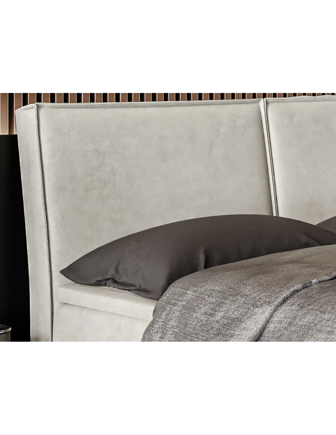 Łóżko tapicerowane LOLLY LAVERTO to doskonałe połączenie nowoczesnej prostoty z eleganckim wykończeniem. Charakterystyczne wezgłowie podzielone na dwie równe części, ozdobione subtelnym szwem dekoracyjnym, nadaje całości wyjątkowego stylu i harmonii. Wypełnienie wezgłowia pianką o grubości 3 cm gwarantuje komfort podczas odpoczynku, czytania lub wieczornego relaksu, czyniąc z łóżka Lolly nie tylko element wyposażenia, ale również ozdobę sypialni.