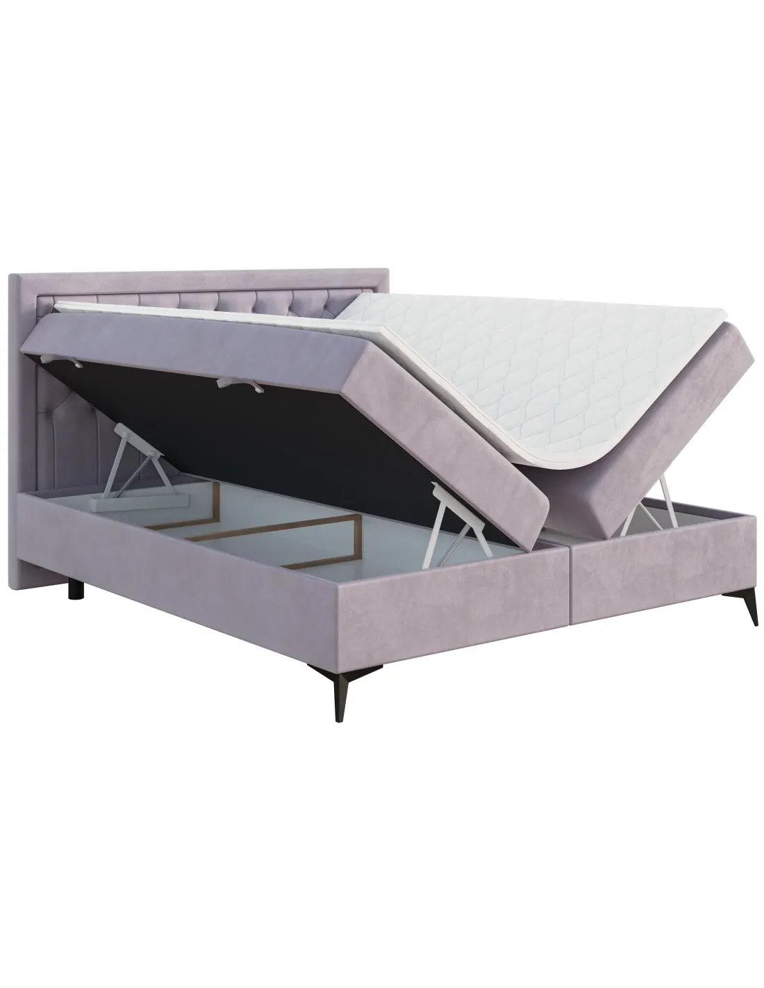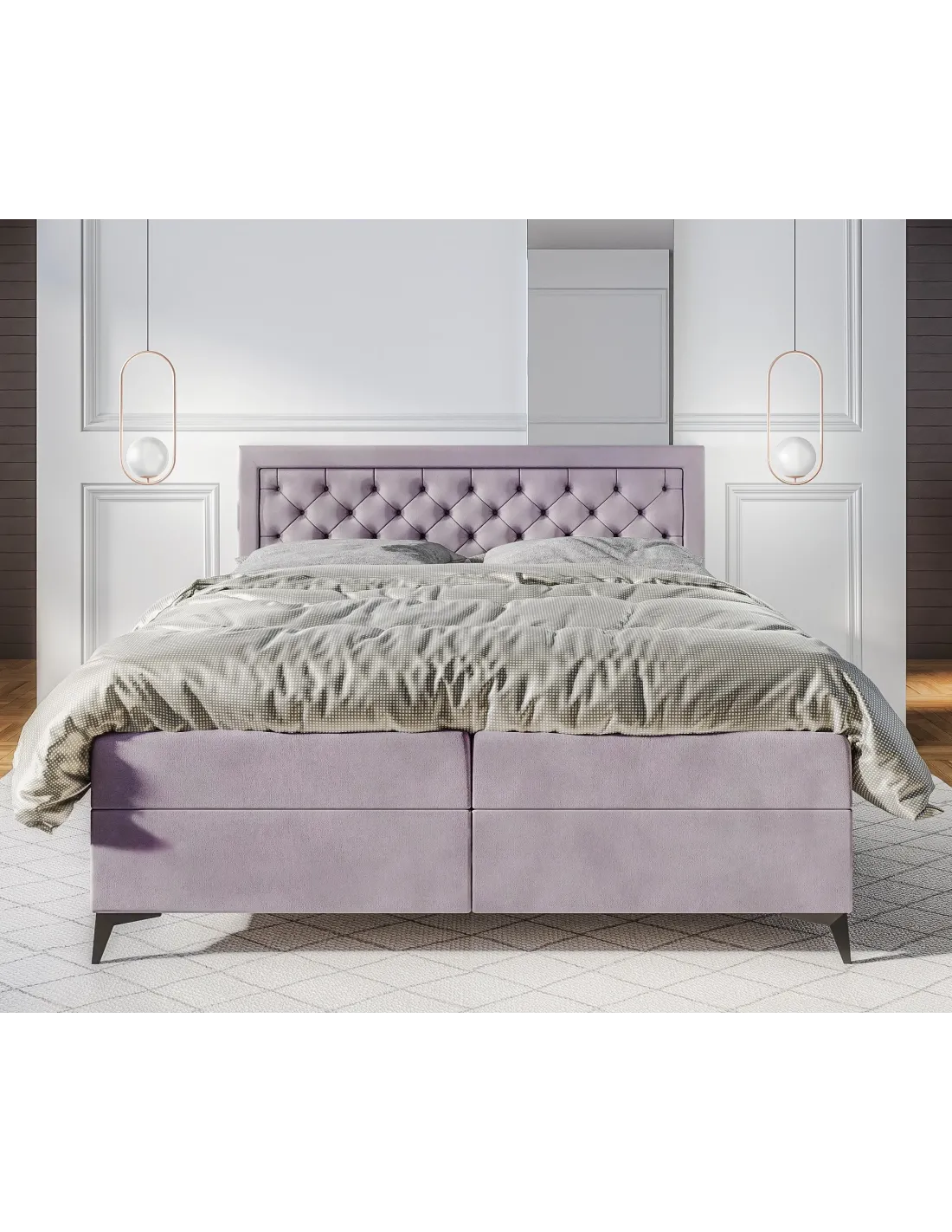 Łóżko LUIZA LAVERTO wyróżnia się nie tylko pięknym wyglądem, ale także praktycznymi rozwiązaniami, które czynią je wyjątkowo funkcjonalnym. Pojemne schowki na pościel otwierane na boki zapewniają łatwy dostęp i pomagają utrzymać porządek w sypialni. Metalowe nogi w odcieniu czarnego matu lub chromu nadają meblowi lekkości i elegancji, jednocześnie podkreślając jego nowoczesny charakter. Dzięki subtelnemu pikowaniu i symetrycznemu wzorowi wezgłowie wprowadza do wnętrza nutę luksusu i harmonii.
