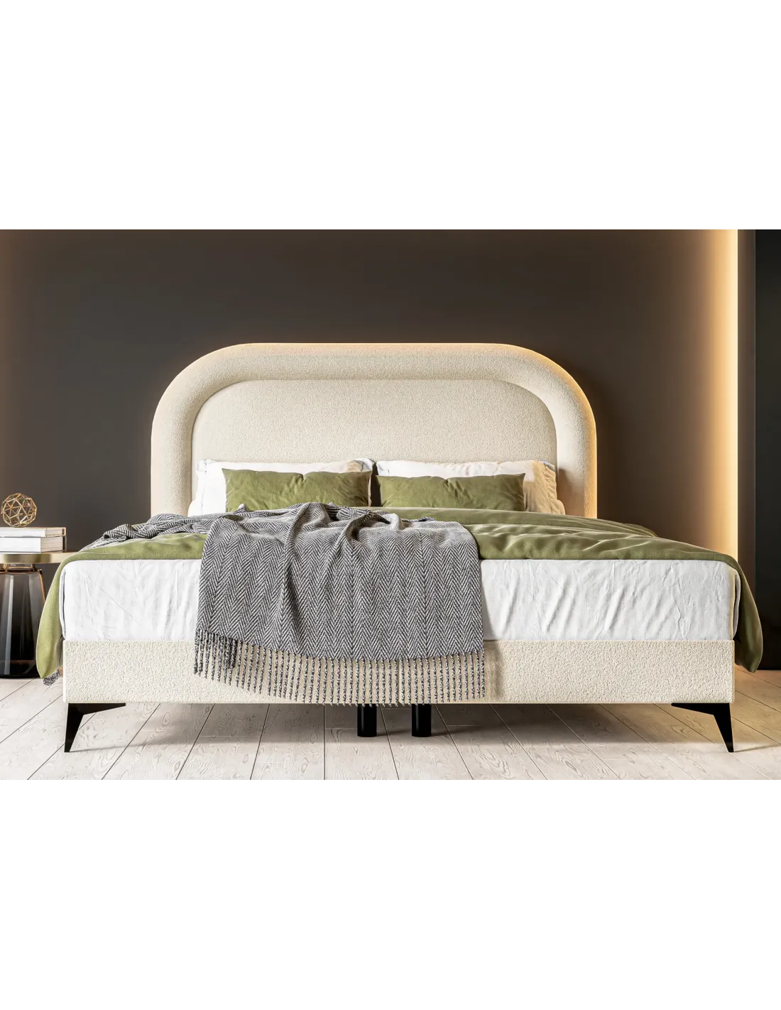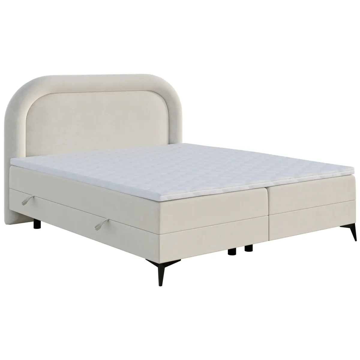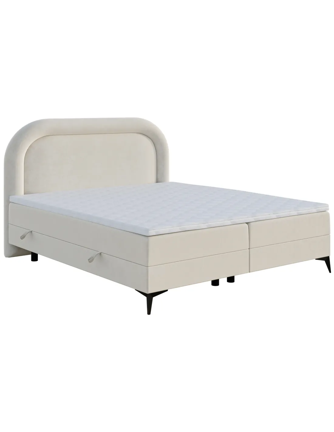 Konstrukcja łóżka opiera się na solidnej podstawie z płyty meblowej, co zapewnia trwałość i stabilność przez lata. Metalowe nogi, dostępne w kolorze czarnym matowym, złotym lub chromowanym, nadają całości elegancji i lekkości. Wielopoziomowa konstrukcja o wysokości siedziska 54 cm zapewnia ergonomię i wygodę użytkowania, a pojemniki na pościel wbudowane w podstawę łóżka pozwalają na praktyczne wykorzystanie przestrzeni. To idealne rozwiązanie dla osób ceniących porządek i estetykę w swojej sypialni.