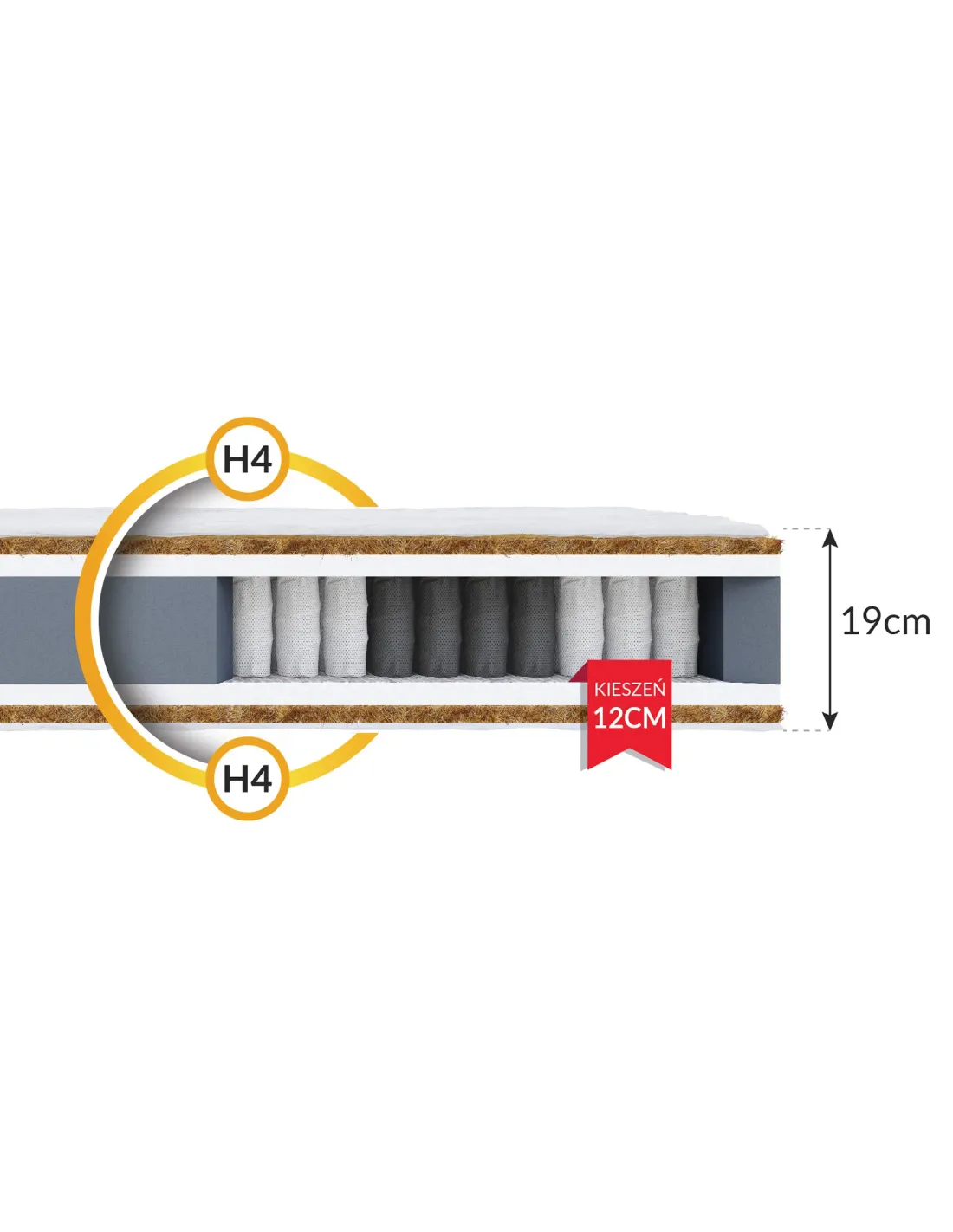Obustronne zastosowanie maty kokosowej usztywnia powierzchnię materaca, poprawiając jej przewiewność i higienę. To szczególnie ważne dla alergików i osób z wrażliwą skórą. Pianka T25 dodatkowo zwiększa komfort i zapewnia długotrwałą sprężystość. Ten model to pewność zdrowego, stabilnego i świeżego snu każdej nocy.