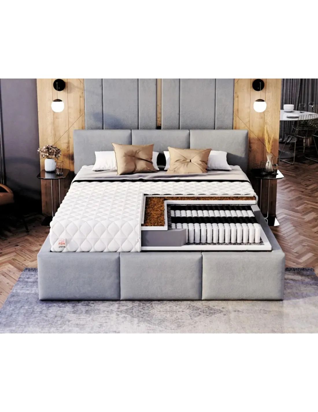 Zastosowanie podwójnie hartowanych sprężyn gwarantuje nie tylko stabilne podparcie, ale również ponadprzeciętną żywotność. Wkład materaca został dodatkowo wzbogacony o piankę poliuretanową T25, odporną na odkształcenia, oraz dwustronne warstwy kokosu, które zwiększają twardość i poprawiają właściwości higieniczne. Materac MERANO FDM to połączenie komfortu, wytrzymałości i zdrowego snu przez wiele lat.