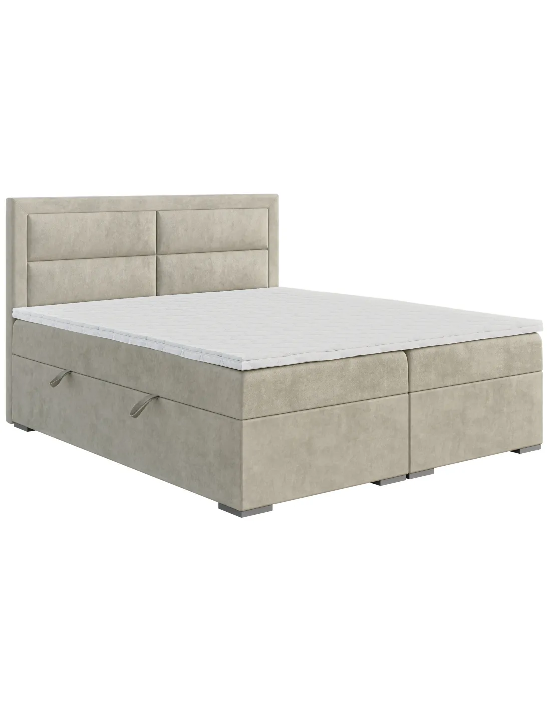 Eleganckie i nowoczesne łóżko tapicerowane MERIDA LAVERTO to idealne połączenie stylu, komfortu i praktycznych rozwiązań. Jego charakterystyczne wezgłowie z czterech prostokątnych paneli tworzy harmonijną i geometryczną kompozycję, która przyciąga uwagę swoją prostotą i elegancją. Taki design nadaje wnętrzu nowoczesnego charakteru, a jednocześnie zapewnia przytulny klimat sprzyjający wypoczynkowi. Miękkie oparcie, wypełnione pianką, gwarantuje komfort użytkowania zarówno podczas snu, jak i codziennego relaksu.