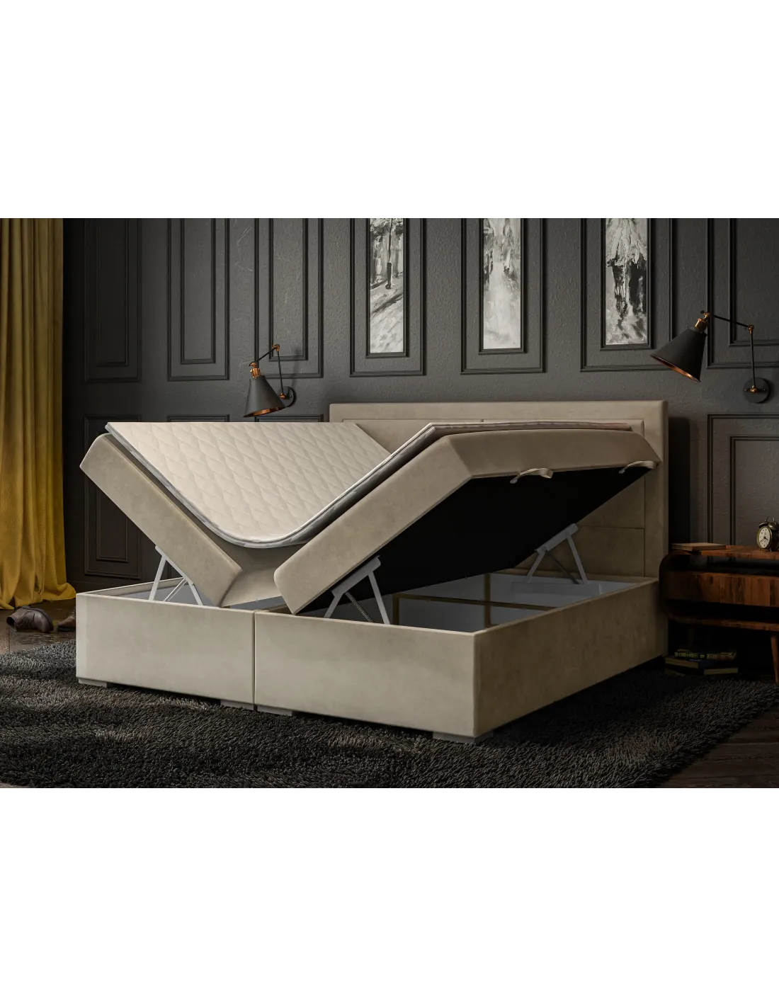 W standardzie łóżko wyposażone jest w materac bazowy typu bonell z pianką T25 o wysokości 20 cm oraz materac nawierzchniowy (topper) z tej samej pianki o grubości 5 cm, zapewniający dodatkową warstwę komfortu. Model MERIDA posiada również dwie pojemne skrzynie na pościel otwierane na boki, które pozwalają w pełni wykorzystać przestrzeń pod łóżkiem. Wersje o szerokości 80 i 90 cm wyposażone są w jeden box, natomiast modele od 120 cm wzwyż – w dwa niezależne pojemniki z systemem podnoszenia z obu stron.