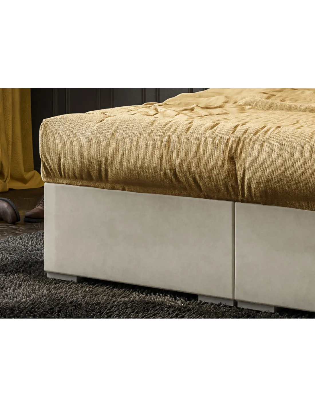 Zastosowanie tkaniny antypoślizgowej w ekranach łóżka zwiększa bezpieczeństwo i zapobiega przesuwaniu się materaca, a miękkie wykończenie tapicerki zapewnia estetyczny wygląd i przyjemny dotyk. Niskie nogi nadają meblowi stabilność, a jednocześnie podkreślają jego nowoczesny, minimalistyczny charakter.