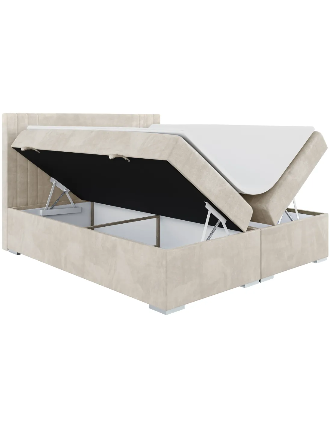 - Pojemne skrzynie na pościel otwierane na boki (dla łóżek od 120 cm szerokości)