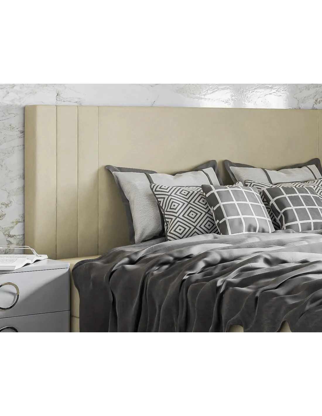 - Wezgłowie przeszywane pionowo po bokach – eleganckie i nowoczesne wykończenie