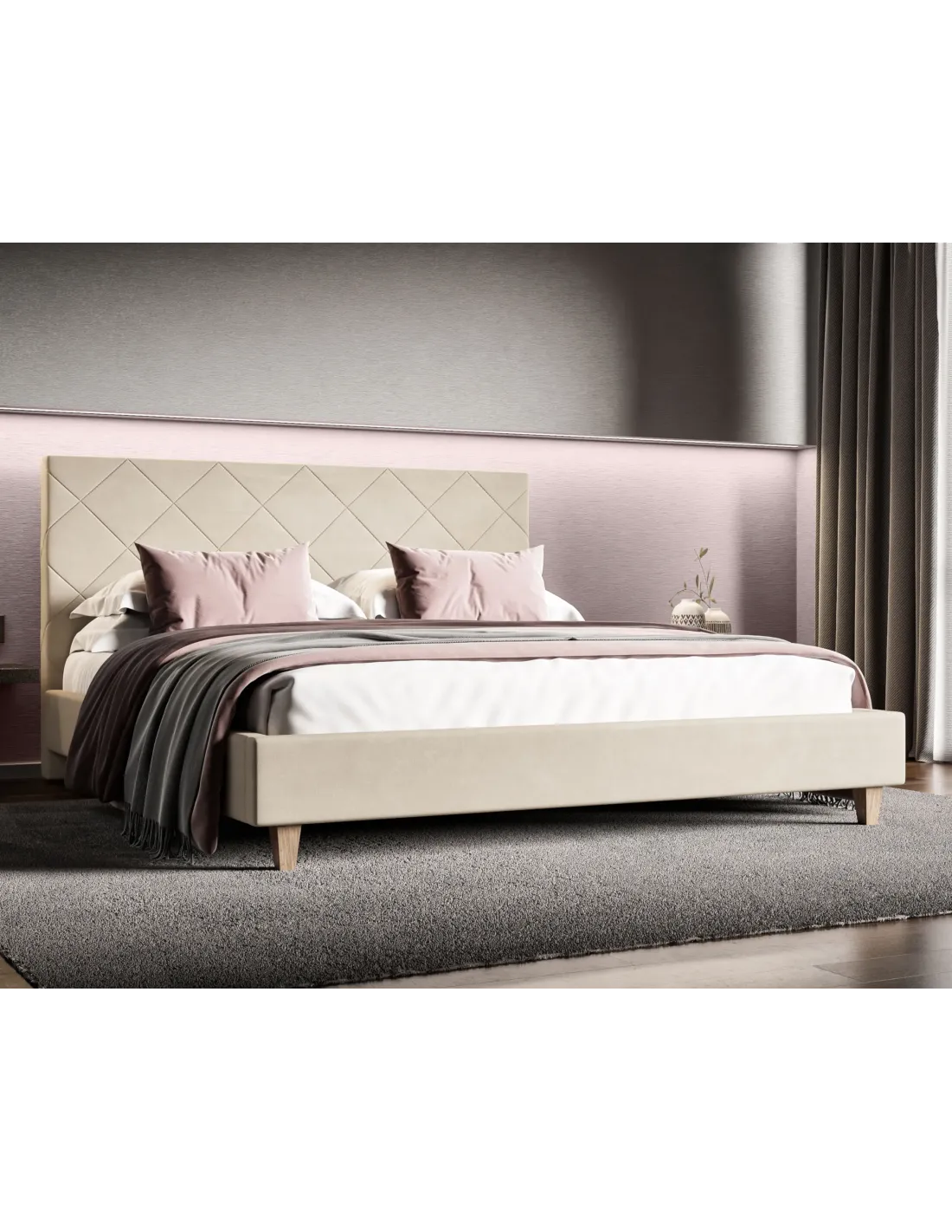 Łóżko SLIM LAVERTO zostało zaprojektowane z myślą o wnętrzach, w których króluje prostota, harmonia i nowoczesna elegancja. Gładkie wezgłowie z geometrycznym przeszyciem w kształcie rombów stanowi subtelny akcent dekoracyjny, który nadaje całości lekkości i stylu. Solidny drewniany stelaż gwarantuje długowieczność konstrukcji oraz odpowiednie podparcie dla materaca, co przekłada się na komfortowy sen i stabilność.