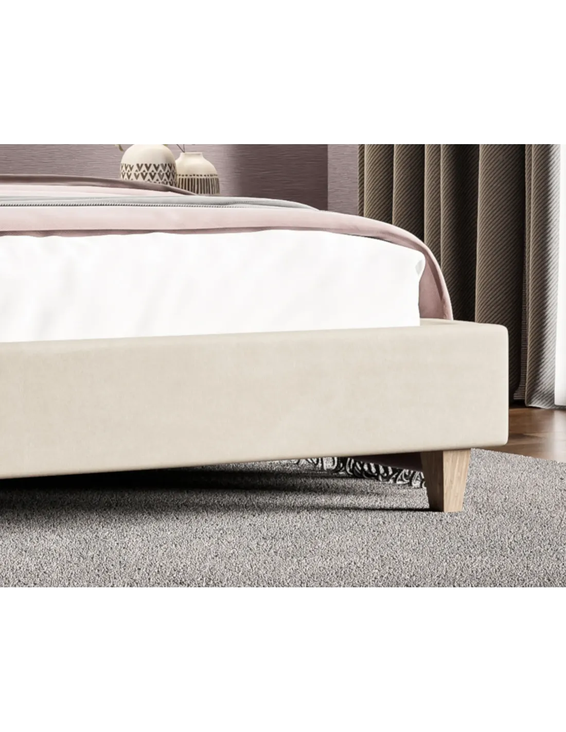 Łóżko posiada bazę o wysokości 35 cm oraz eleganckie nogi o wysokości 13 cm, które nadają konstrukcji lekkości i ułatwiają utrzymanie czystości pod meblem. Wysokość siedziska wynosząca 65 cm zapewnia komfort użytkowania i ergonomiczne wstawanie. Dzięki solidnej budowie oraz dopracowanemu wykończeniu, SLIM LAVERTO jest doskonałym wyborem dla osób ceniących estetykę, wygodę i prostotę w jednym.
