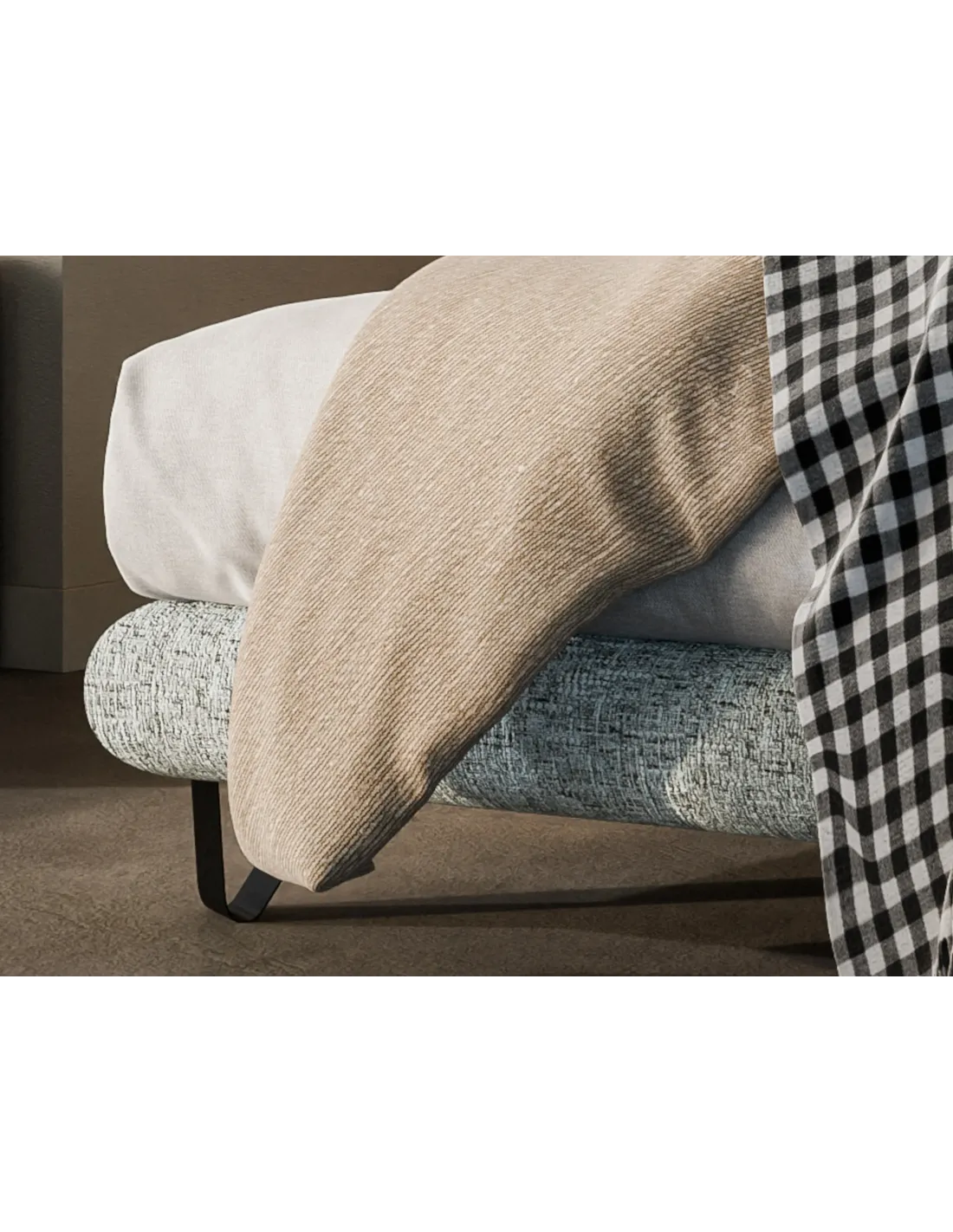 Zastosowanie tkaniny antypoślizgowej w ekranach łóżka zwiększa stabilność i bezpieczeństwo użytkowania, a metalowe nogi w kolorze czarny mat dodają lekkości i nowoczesnego charakteru. Pikowane detale podkreślają wyrafinowany wygląd mebla, czyniąc go idealnym wyborem do eleganckich wnętrz. Wielopoziomowa konstrukcja łóżka zapewnia optymalną wysokość i wygodę codziennego użytkowania.