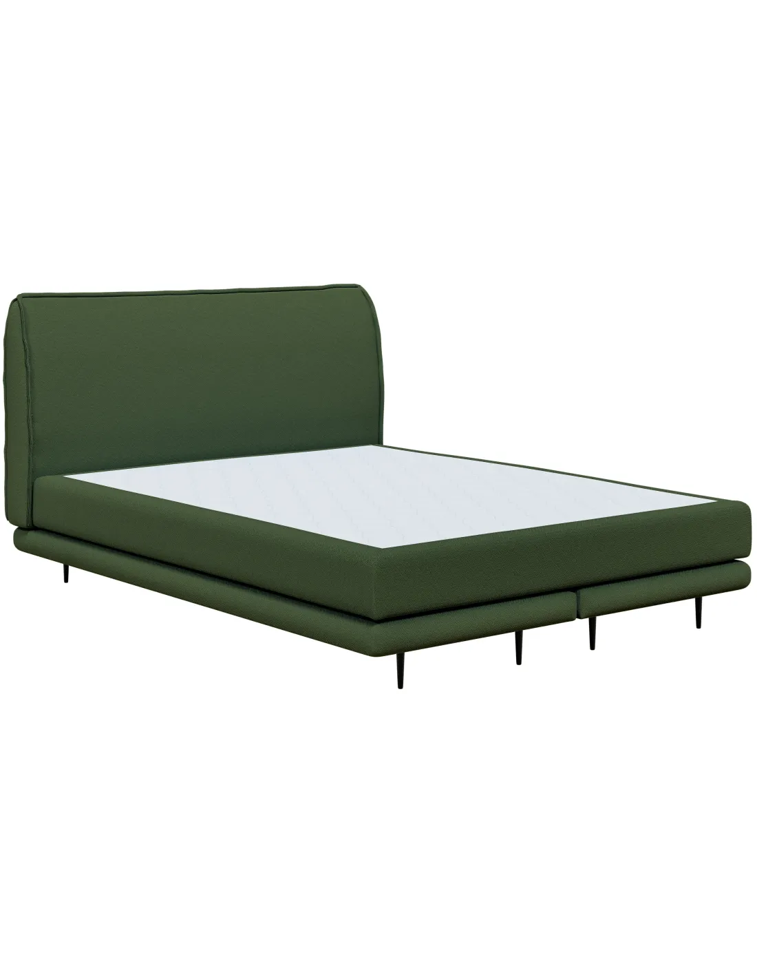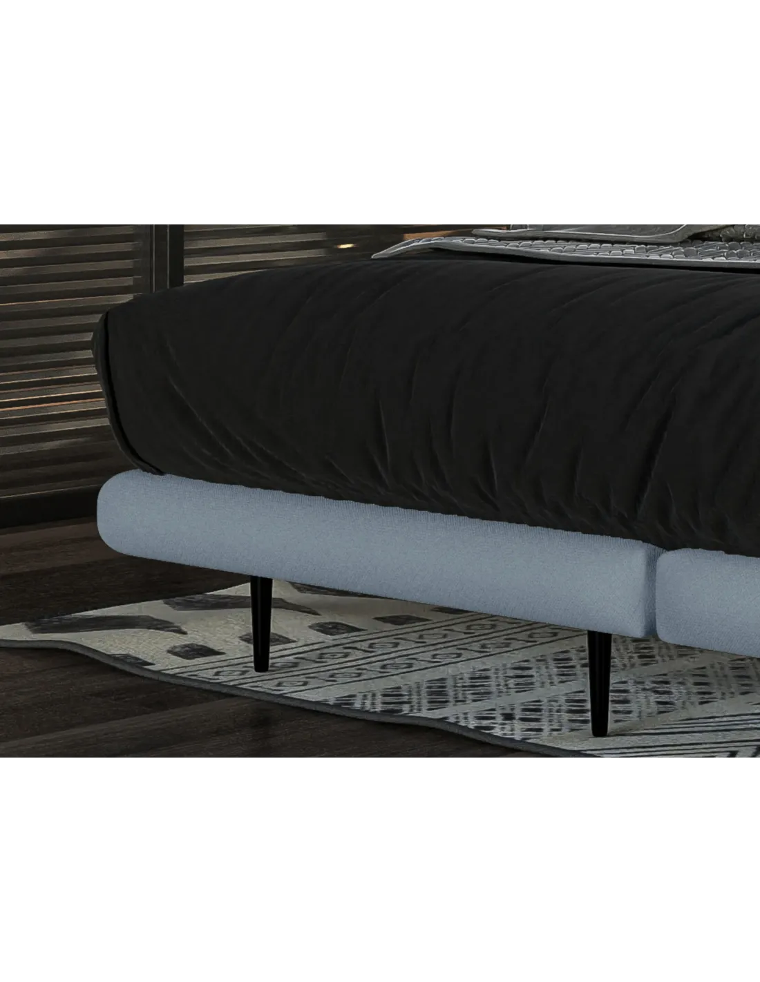 Solidna drewniana rama z nabitymi pasami elastycznymi zapewnia odpowiednie podparcie i wygodę, a metalowe nogi dodają stabilności i elegancji. Całość tworzy lekką, ale trwałą konstrukcję, idealną dla osób ceniących połączenie funkcjonalności i nowoczesnego stylu. Łóżko ROSTO to nie tylko komfortowy mebel do spania, ale również wyjątkowy element wystroju sypialni.